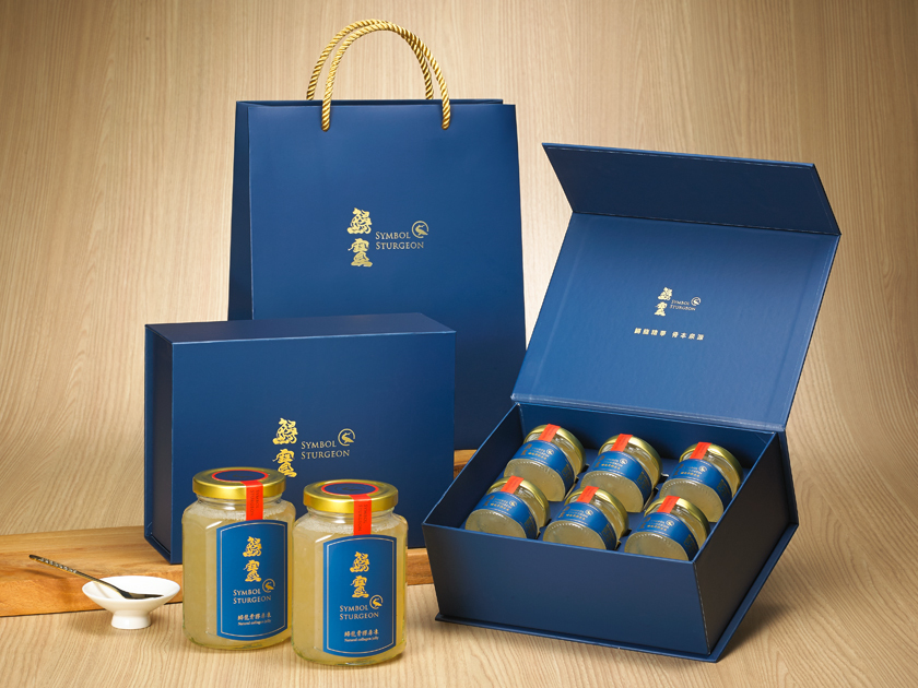 擁有廚師證照與食品研發背景的創辦人,全心投入鱘龍魚食品的開發研究,終於在2016年成功淬鍊出第一支產品「鱘龍骨膠原凍」,保有高度有價值成份,同時兼具燕窩般滑順清爽的口感,『鱘寶』品牌就此誕生。