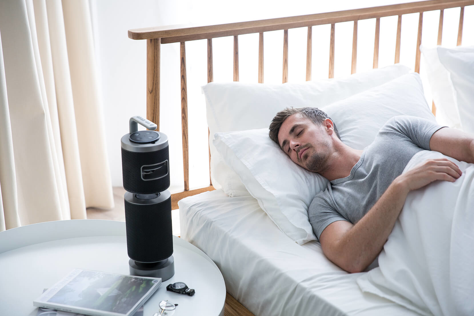 UPstage 360 解放空間限制,採用最新 360 度無指向性聲學技術,全方位無死角擴散、讓最佳音質均勻散佈,隨處移動,也都能聽見最飽滿的聲音表現