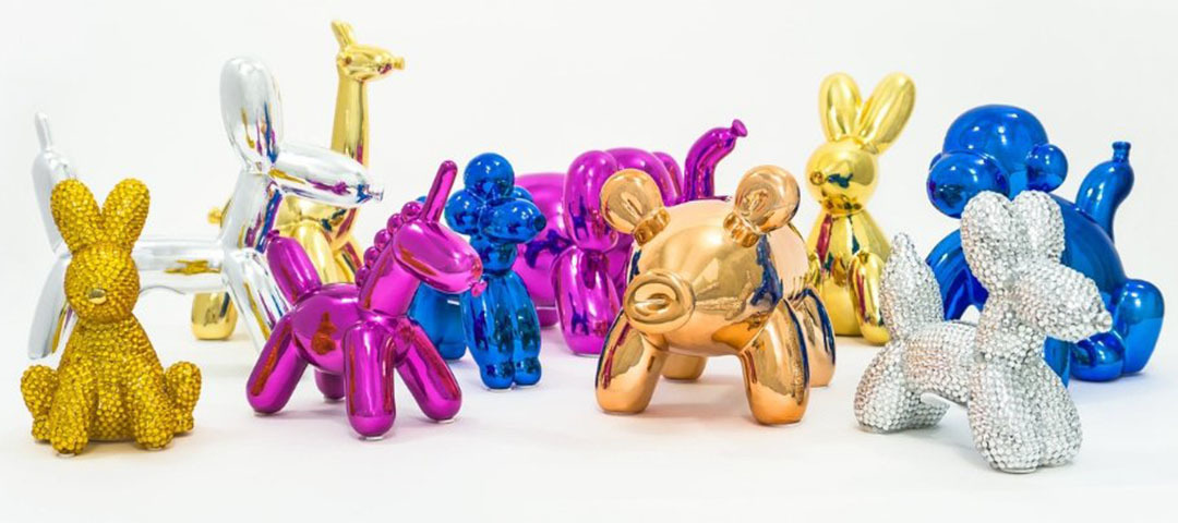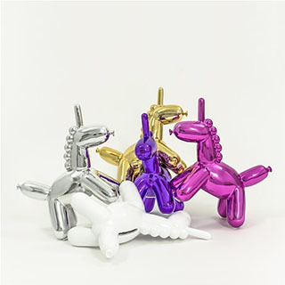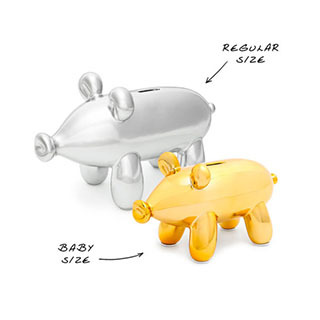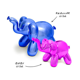 Playhouse設計生活精選的招財小物─閃亮普普風動物存錢筒,閃光猴子、金色邦妮兔、長鼻金象、銀白氣球狗,亮面金屬處理讓您不論將它放置在家中哪個位置都不容忽視,可愛又現代的設計,將存錢這件平凡小事變成金銀滿載的行動藝術。