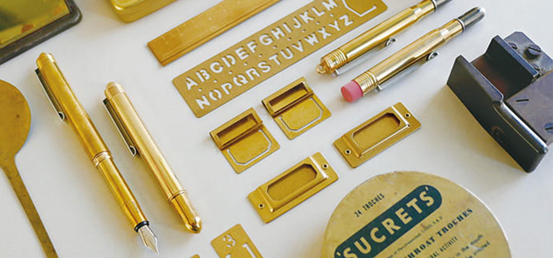 黃銅系列筆具、筆盒、直尺皆為日本工廠製造。