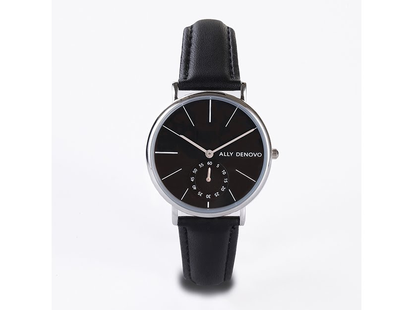 ALLY DENOVO全時經典腕錶-黑錶面銀框黑色真皮錶帶