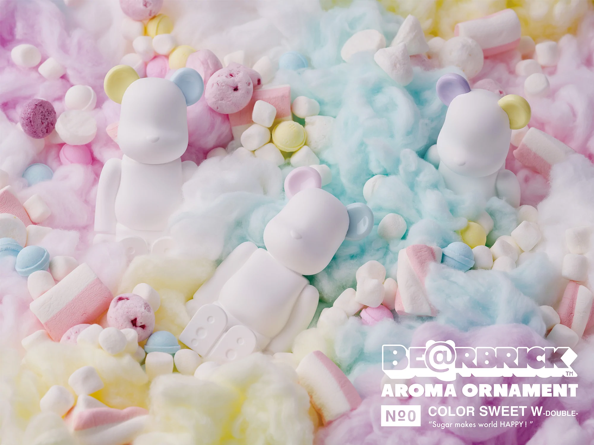 日本BE@RBRICK庫博力克香氛熊馬卡龍彩色耳朵版(黃色+藍色 / 紫色+黃色 / 粉色+薄荷綠)