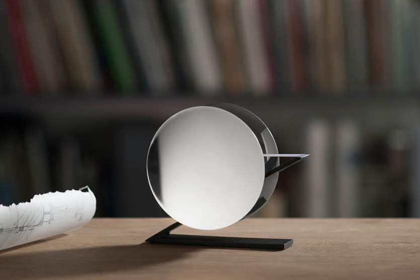 古希臘哲學家、數學家、物理學家阿基米德曾說:「給我一個支點,我就可以舉起整個地球。」設計團隊反其道而行,改變膠台的視覺重心,透過偏移球體、拋光鏡面,以及線條極簡的L型懸臂設計,讓Cantili有別於一般膠台的笨重體態,展現視覺輕巧的飄浮感。