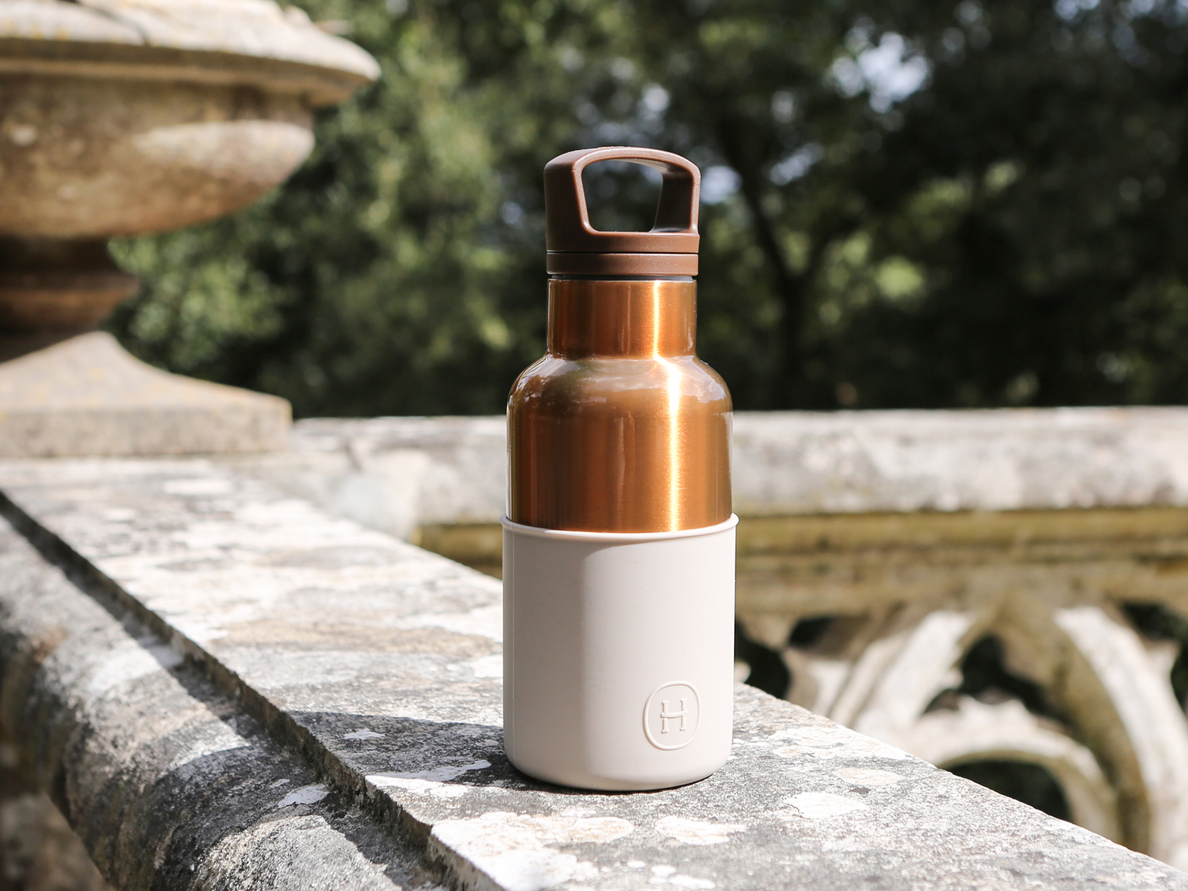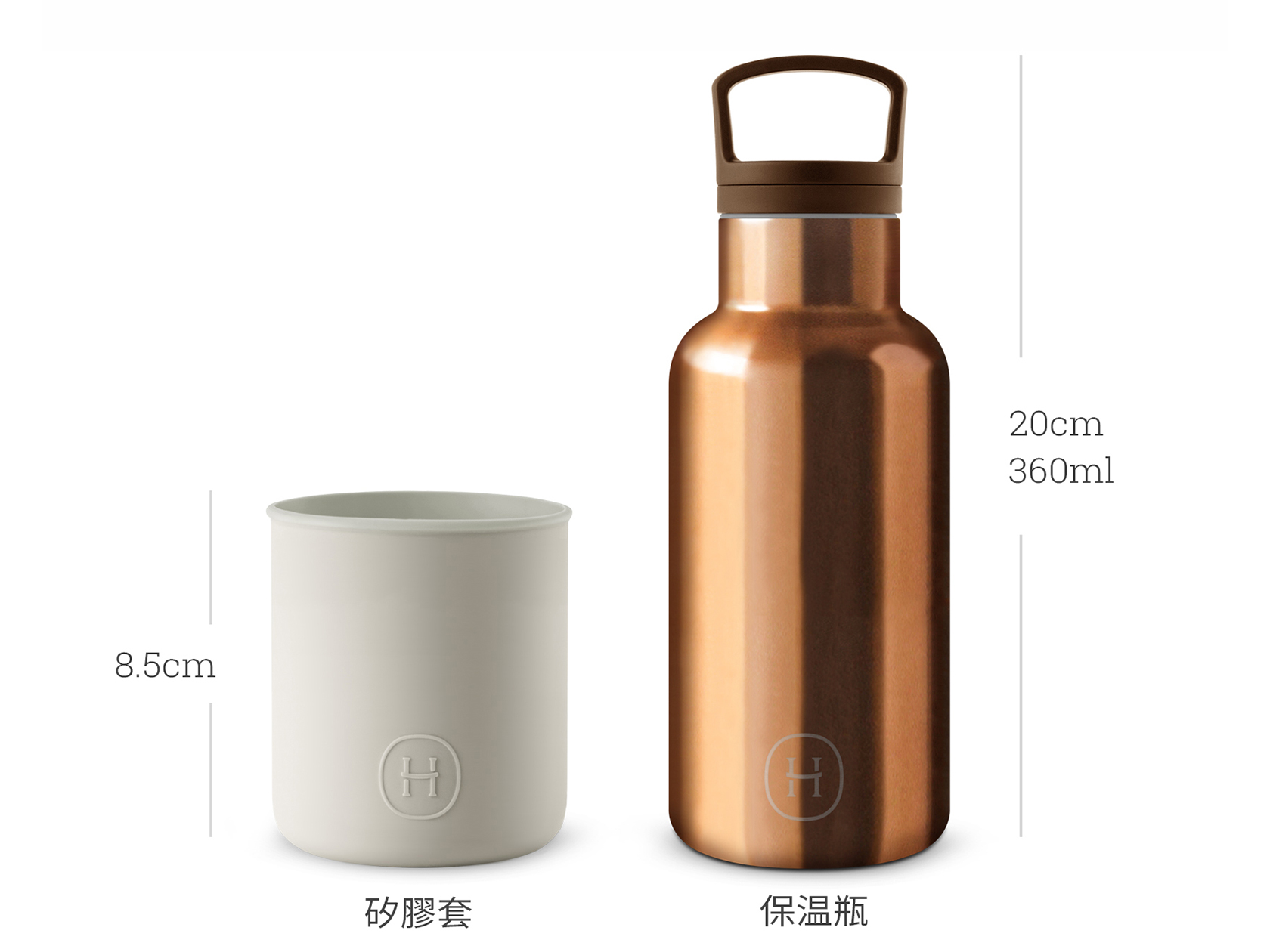 美國HYDY CinCinDéco 不鏽鋼保溫瓶 (古銅金瓶+尤加利保護套)360ml