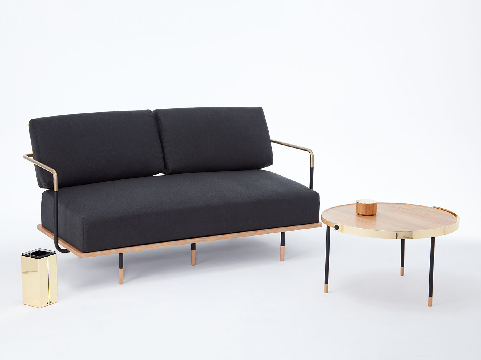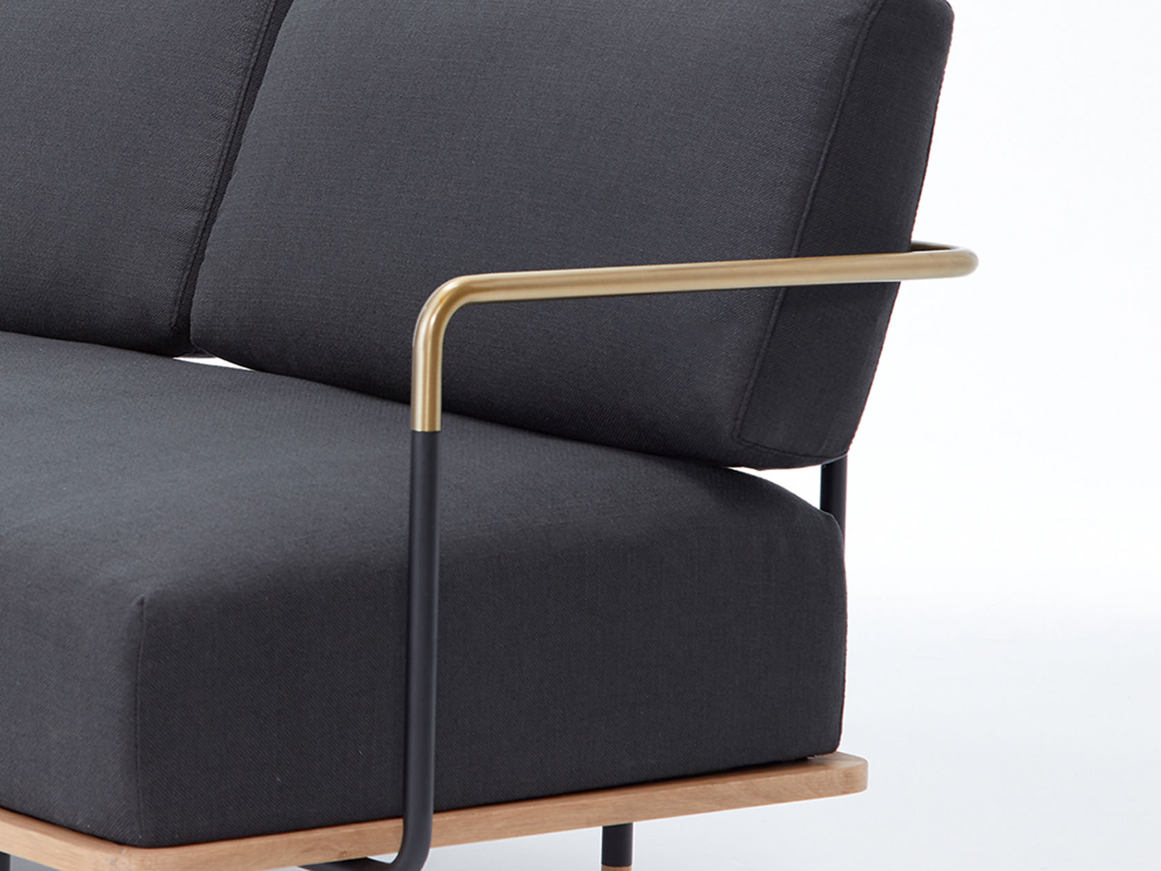沙發的高端設計以外顯實木做為基底,黃銅扶手的柔和線條結合坐墊精準的比例結構,蘊藏著柔軟卻堅強的北歐思維。