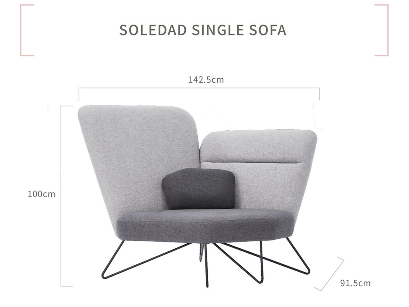 SOLEDAD沙發的工藝技術獨特且別具匠心,雙面不對稱的椅背,銜接技術發揮到最極致。椅腳的支撐結構,在設計感與實用性上完美平衡。一個人在SOLEDAD沙發上可創造適合獨處、思考、放鬆的私領域,兩個人同坐亦可擁有愜意、簡單、溫暖的感受。