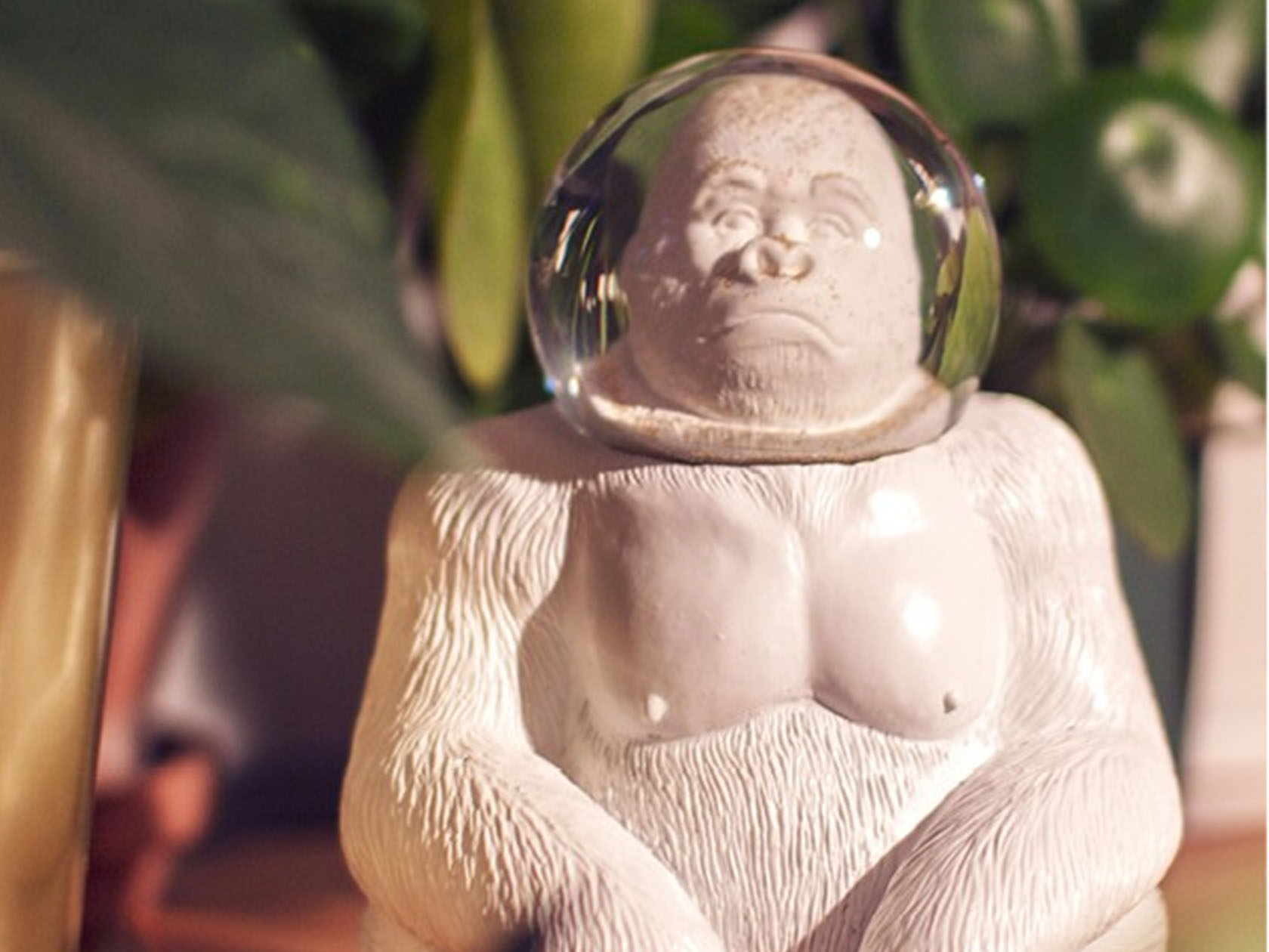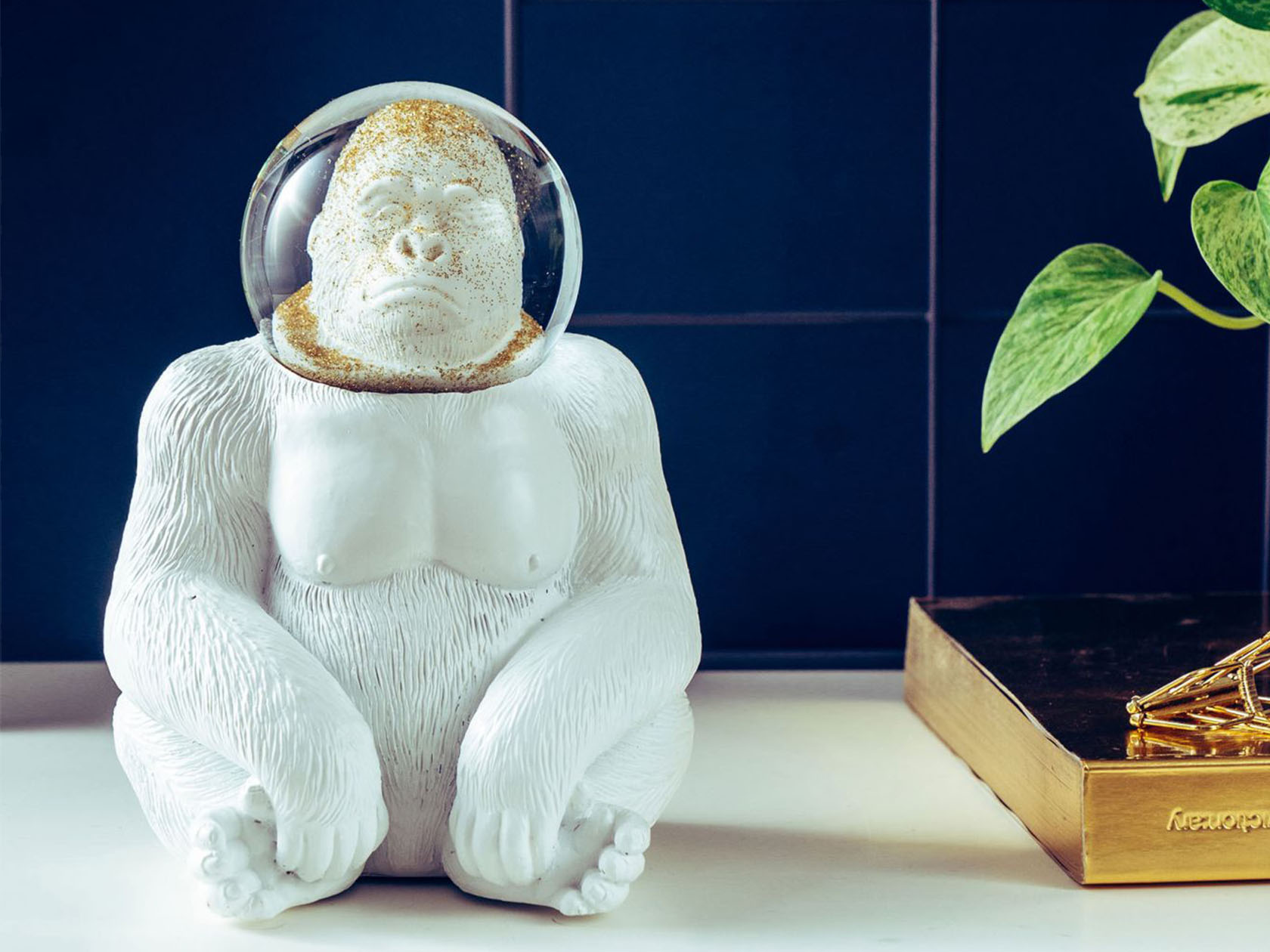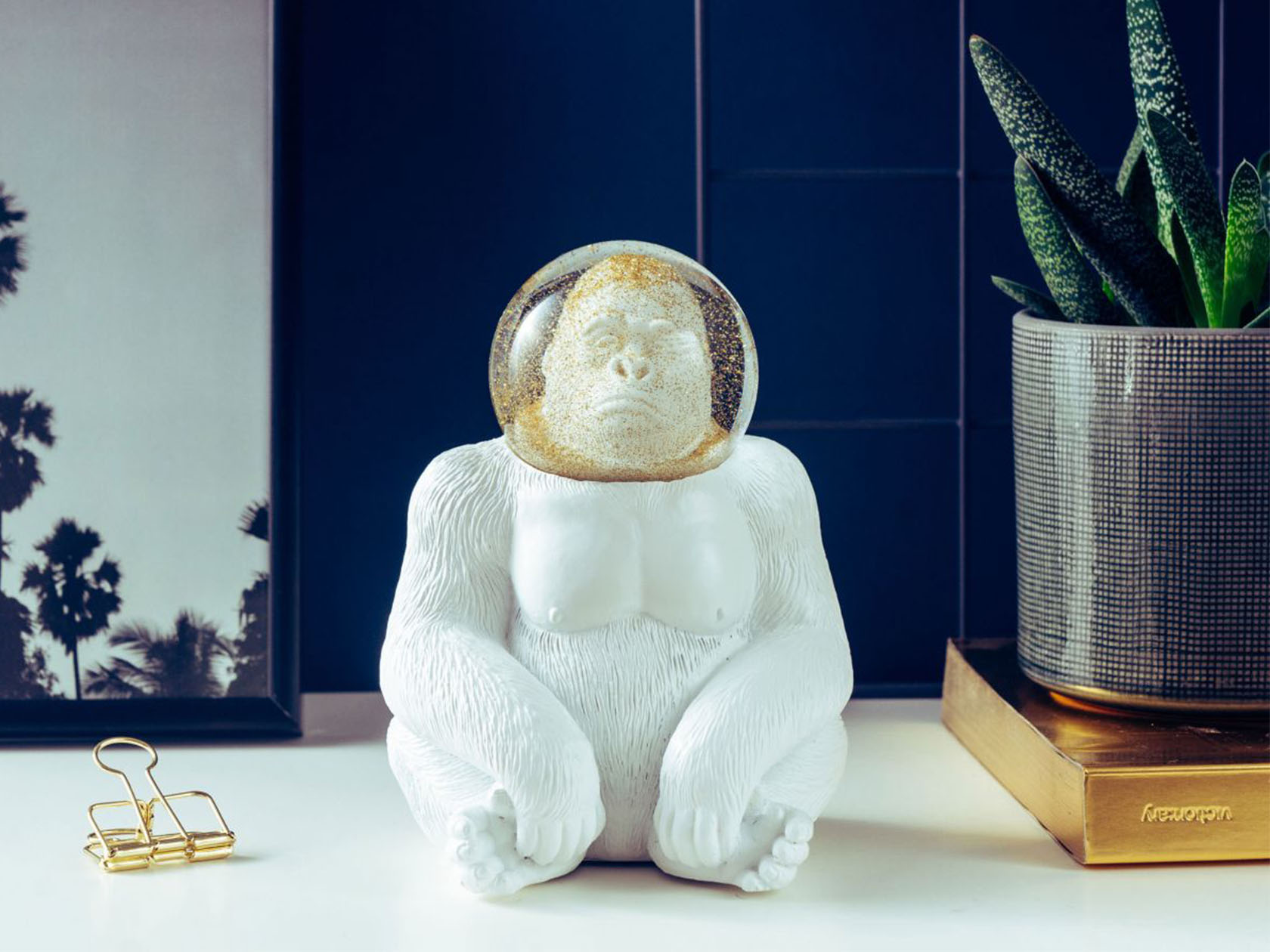 -精緻的金色閃光片在猩猩太空人充滿水的頭盔裡,只需搖晃,效果極佳
