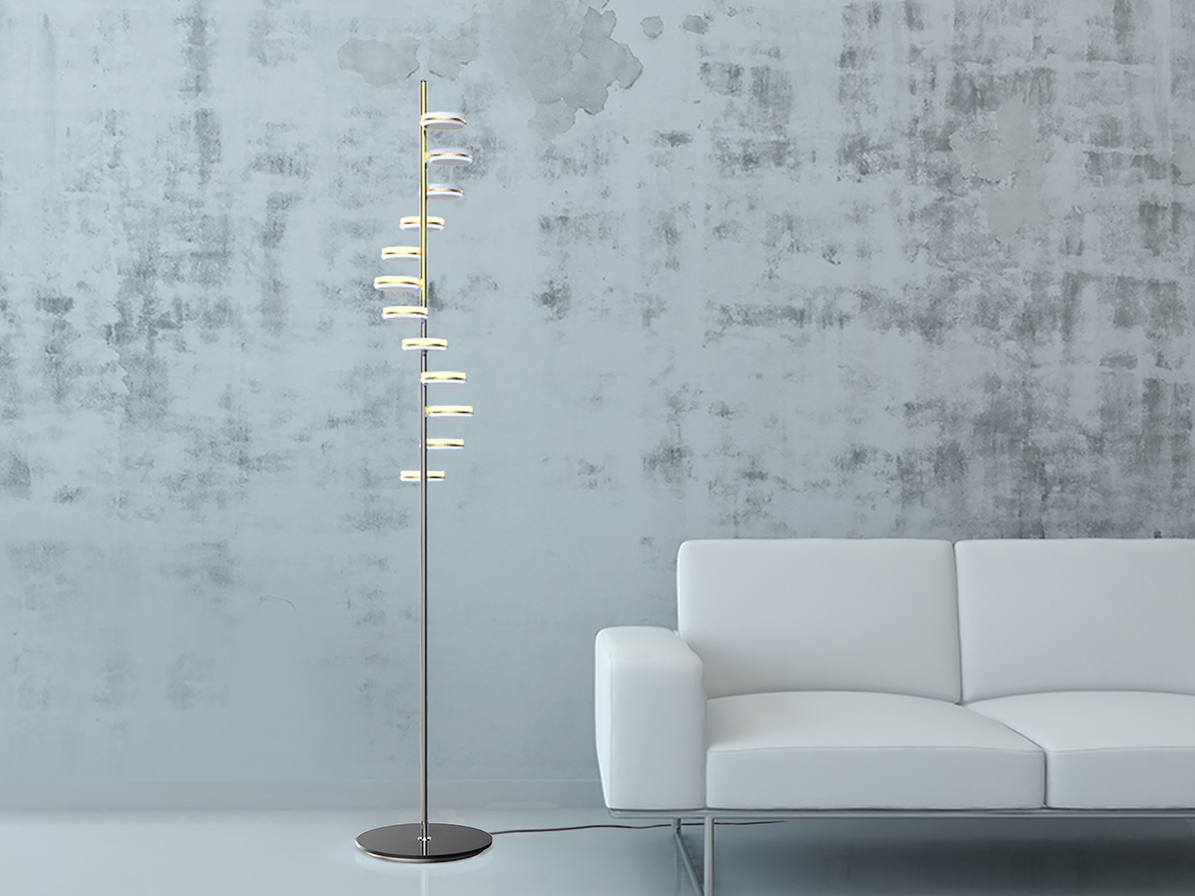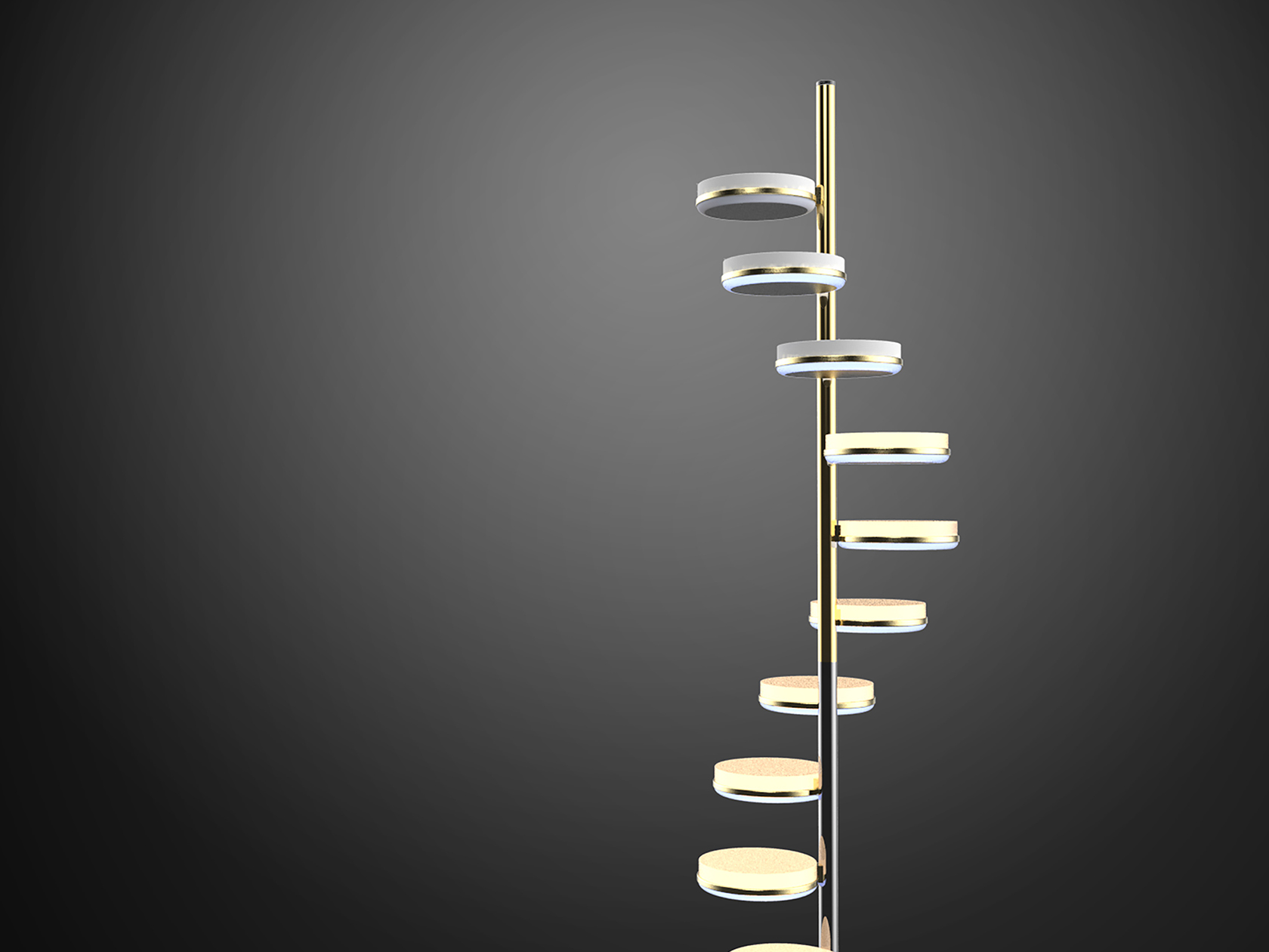 「旋」是一款新式立鐘,將光的元素放入,取代數字與分秒的計時,在每個整點來臨,演繹一段美麗的光舞表演,像是點亮的燭台一般溫暖人心,將時間、環境與人在片刻融合為一,以跳脫傳統時間辨識的框架後,將時鐘化身成觸動人心的現代美學。