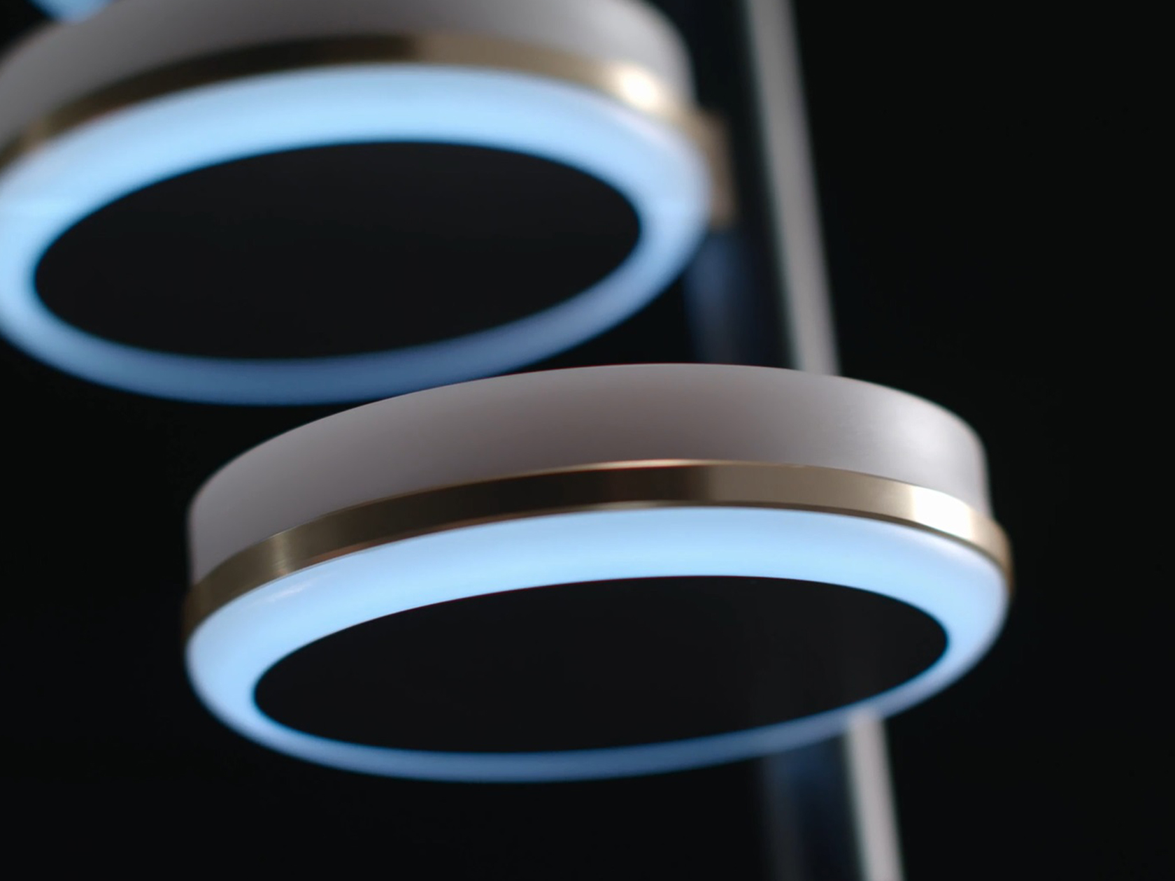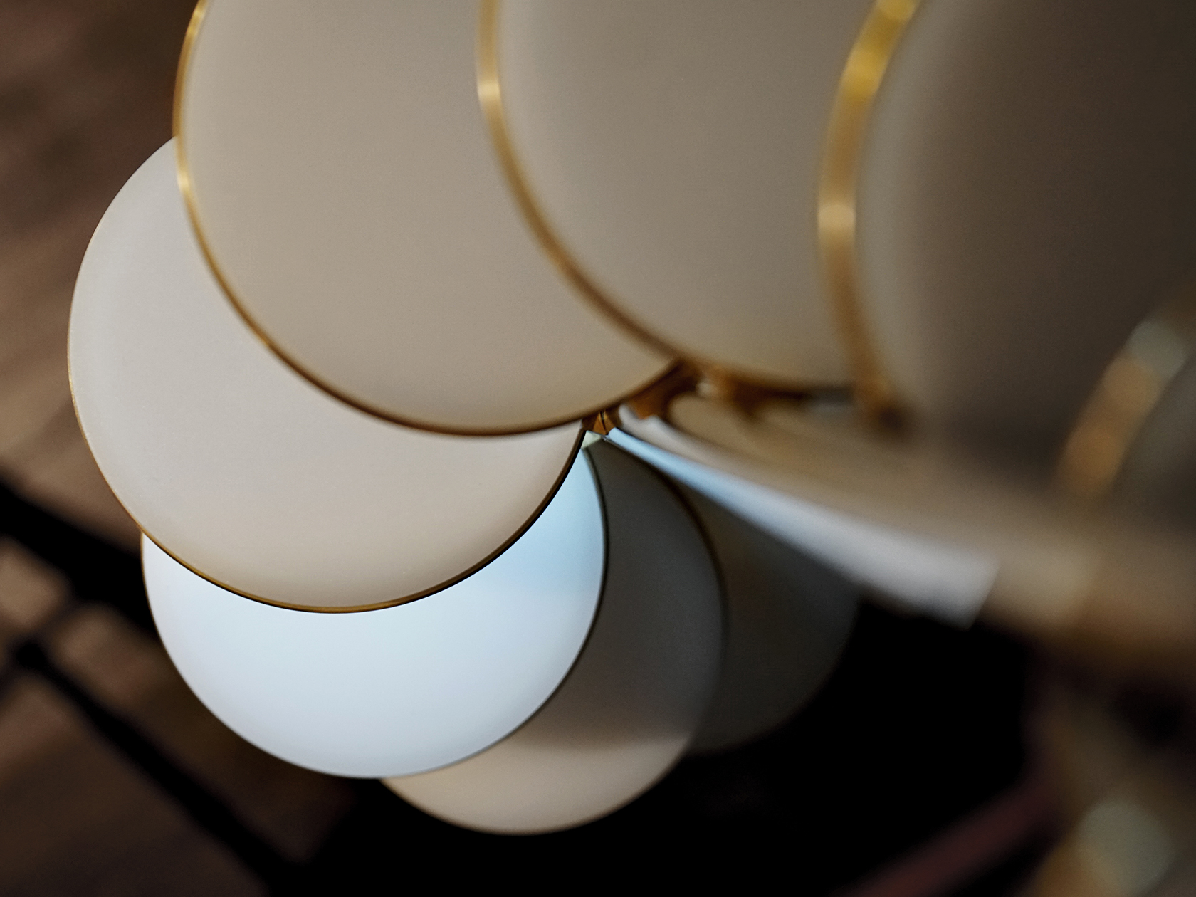 燈上的設計可分兩個層次,上層的暖光為「分鐘」,下層的白光則為「小時」,呈現時鐘設計的新樣貌