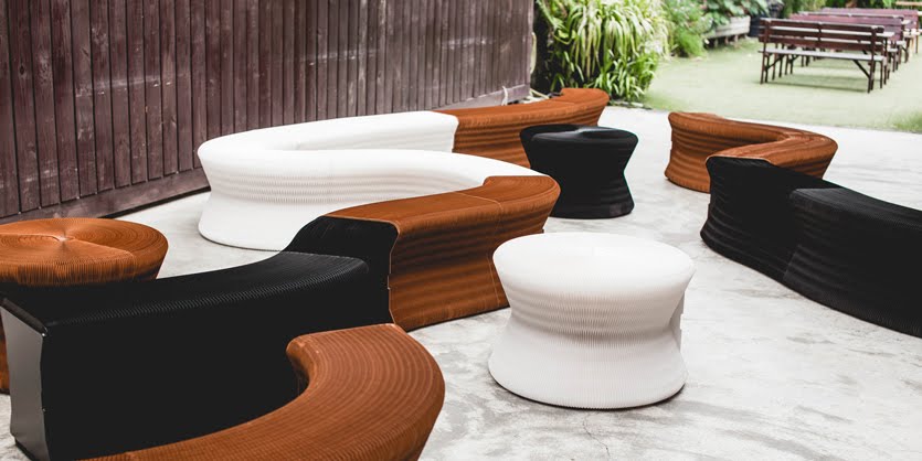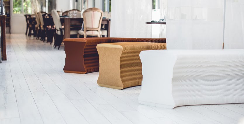 STRETCH,收放自如的愛,可坐一人多至十六個人,從邊緣拉開,就可輕鬆改變椅子長度。全系列使用的蜂巢結構,可以輕易地延展或收縮,靈活創造各種線條與姿態。隨著人的節奏改變空間的不同表情;時而填滿,時而留白,可以沉靜可以活潑,透過豐富的視覺變化體現空間與家具之間的對話。不僅在生活中增添了驚喜的趣味,也拉近與人﹑與世界的關係。