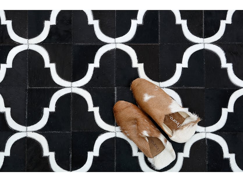 Finara手工牛皮馬賽克玄關地墊-布達佩斯黑色時尚派對