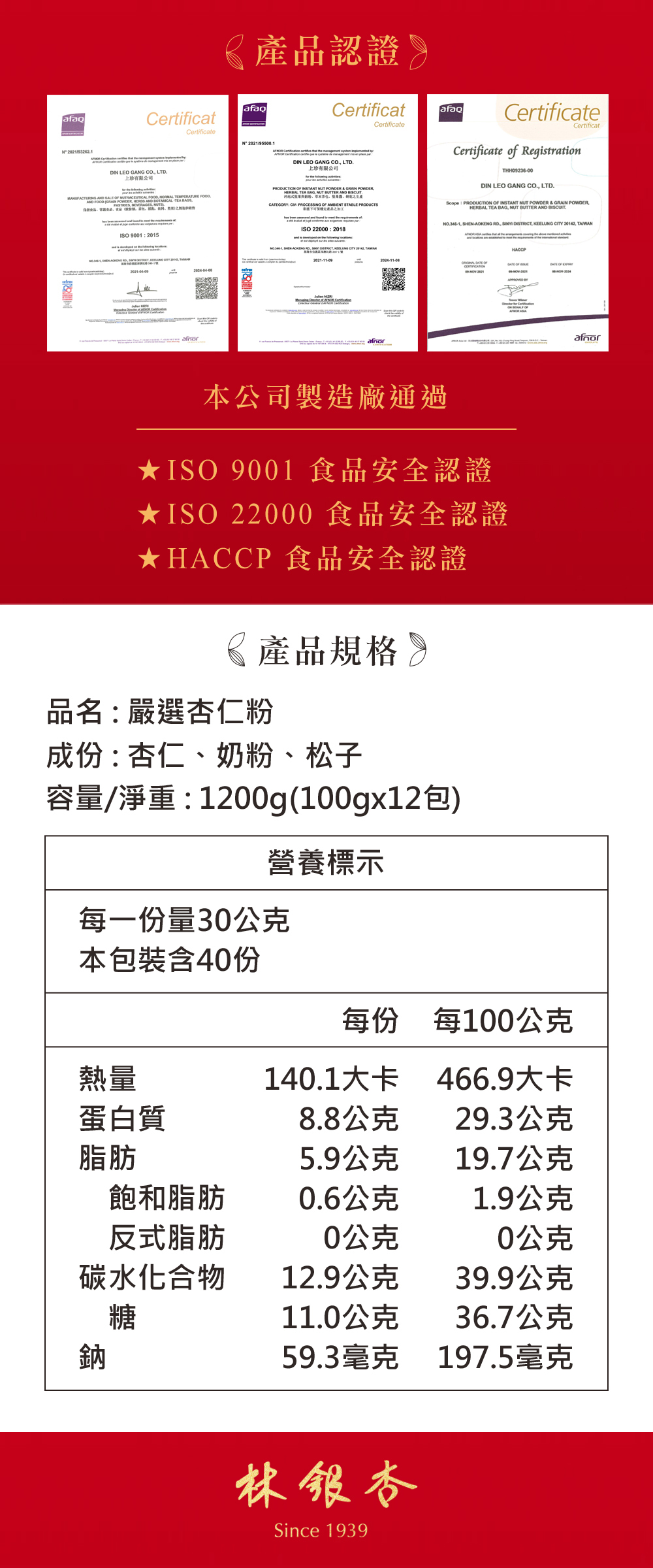 林銀杏嚴選杏仁粉1200g