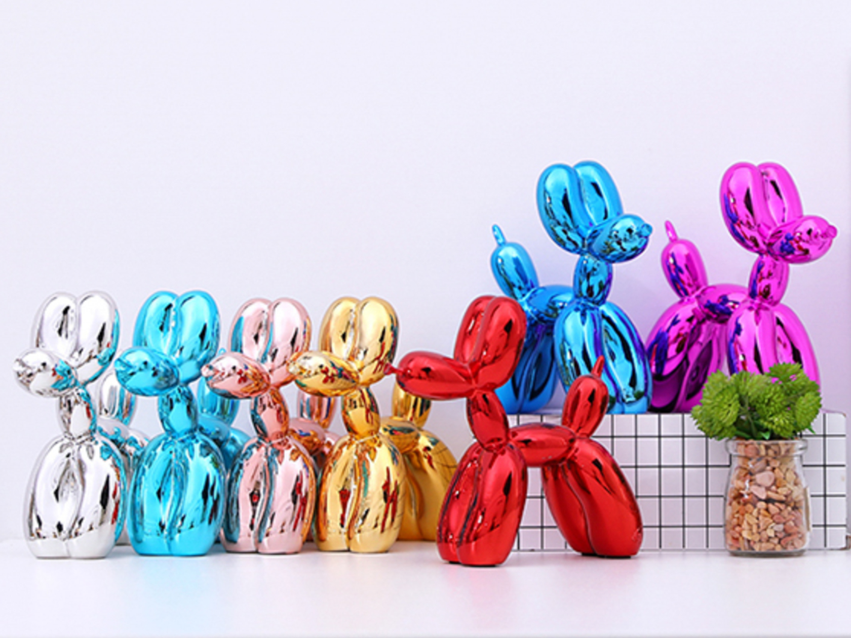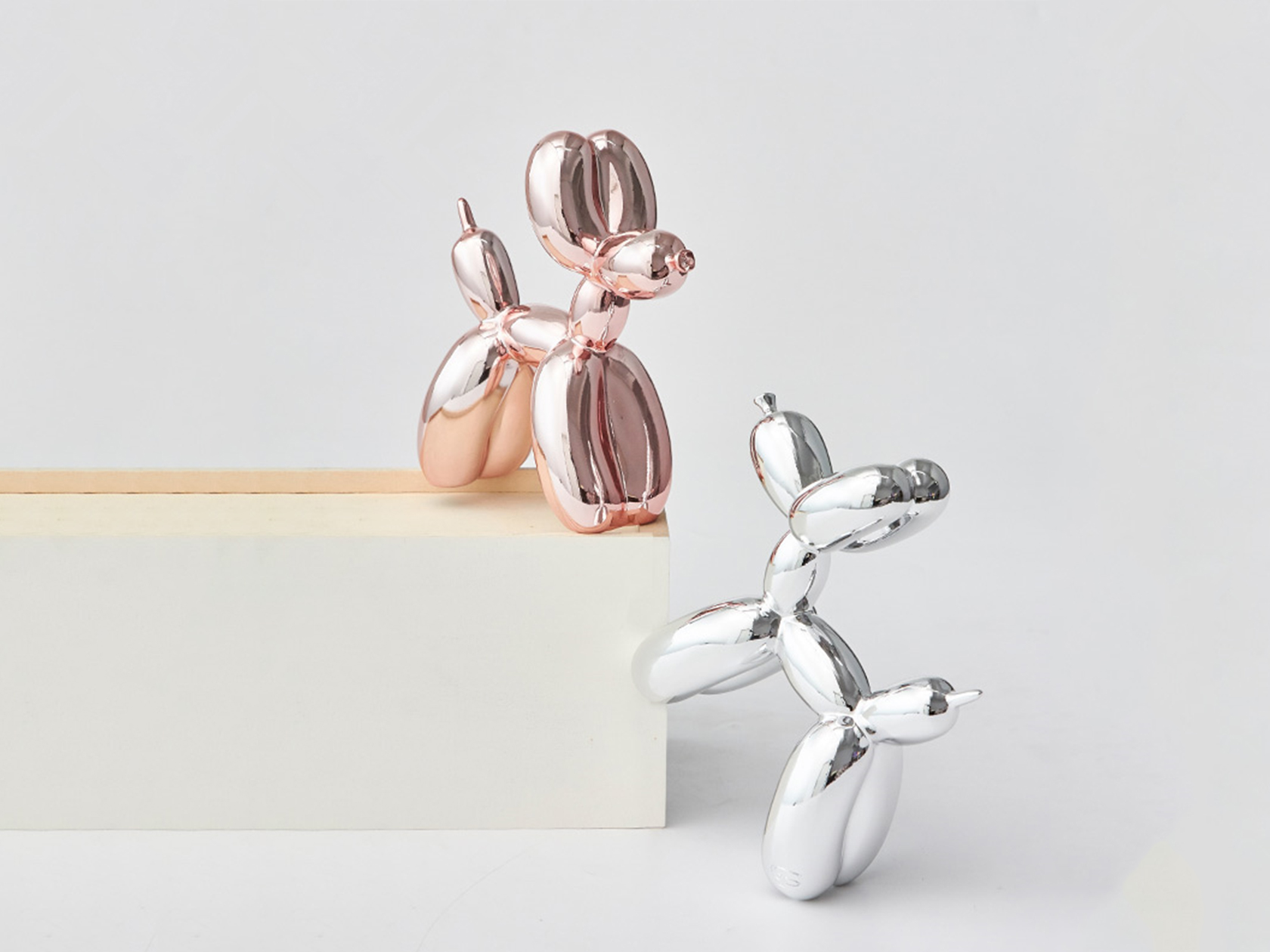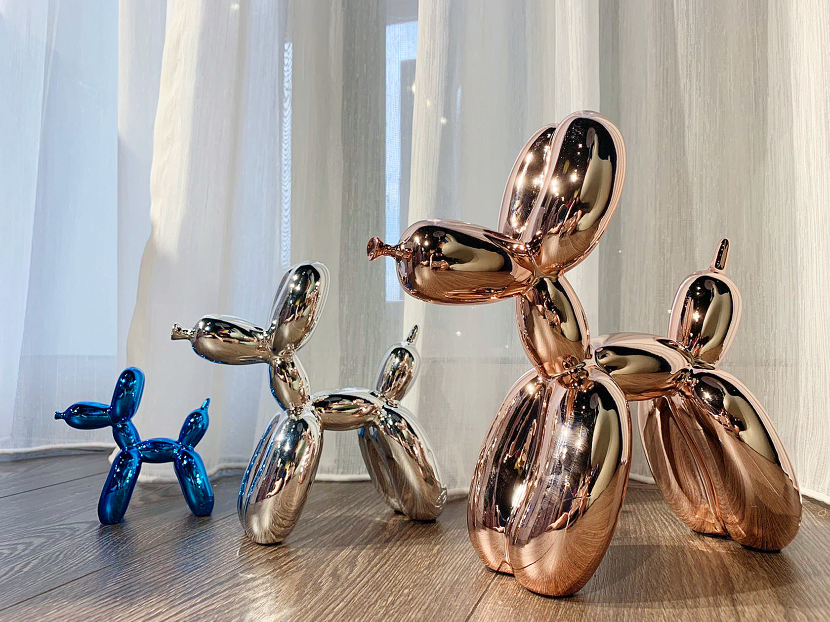 此款所售的氣球狗所選用的主材料為樹脂,表面為電鍍工藝。其視覺效果與風如圖原作一般。