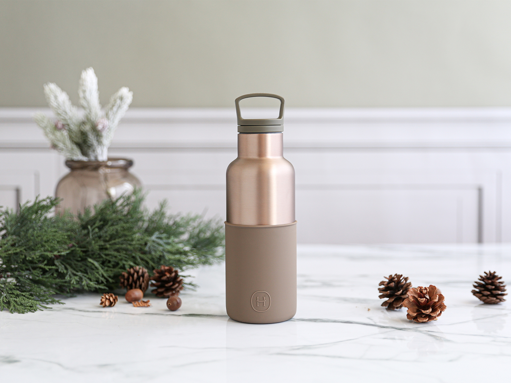 美國HYDY CinCin Déco不鏽鋼保溫瓶(冷杉-軍綠保護套)480ml