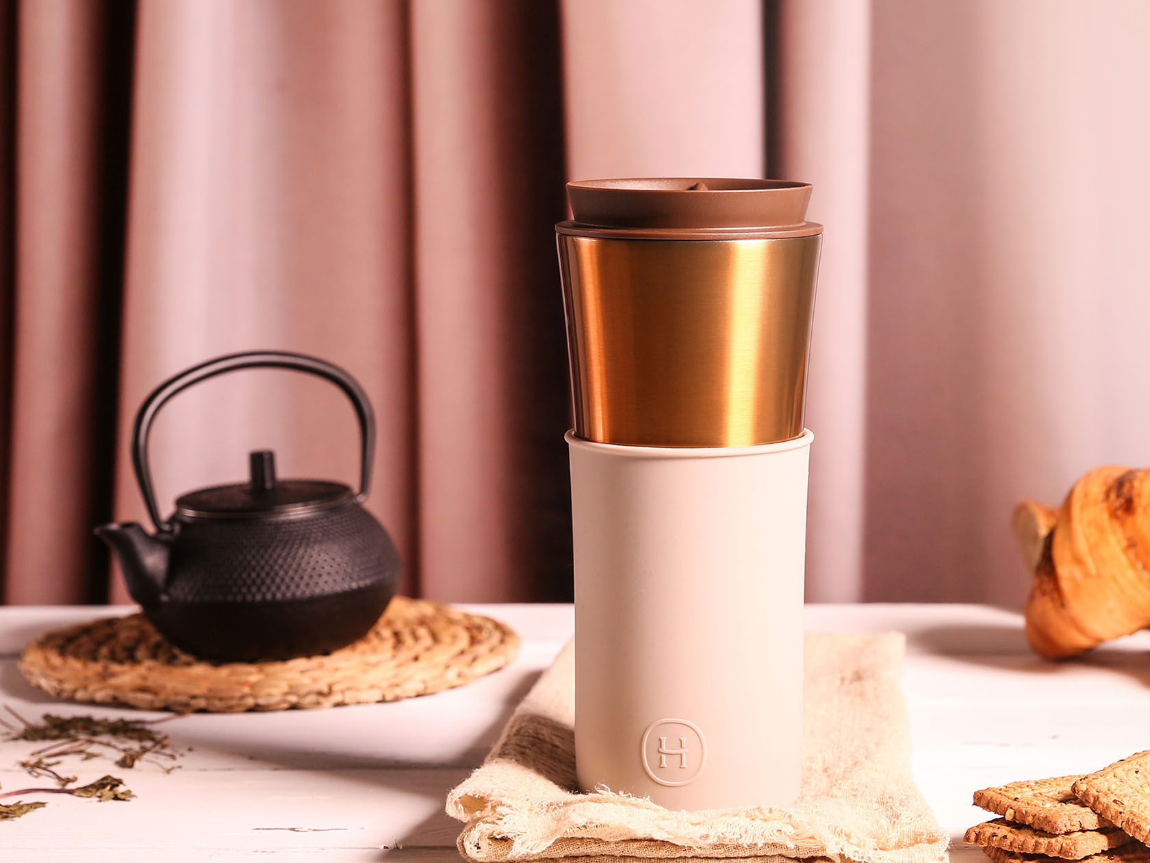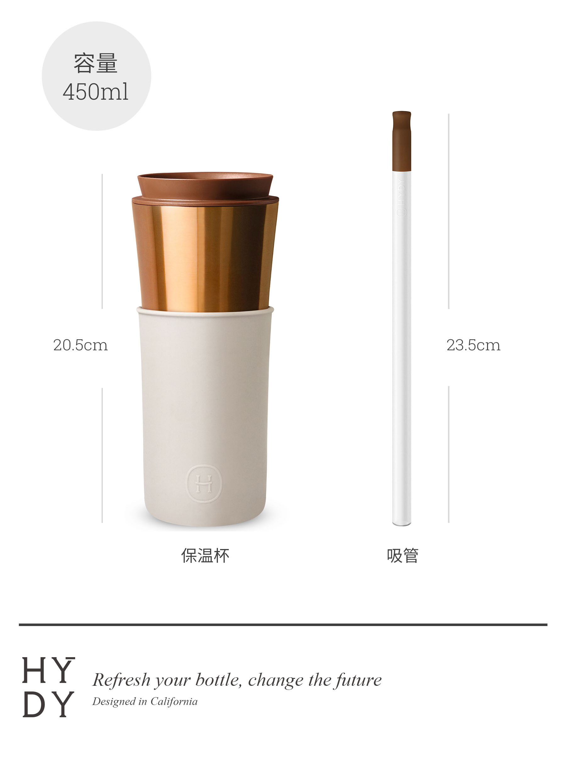 美國HYDY兩用隨行保溫杯 | 古銅金咖啡杯-尤加利(450ML)