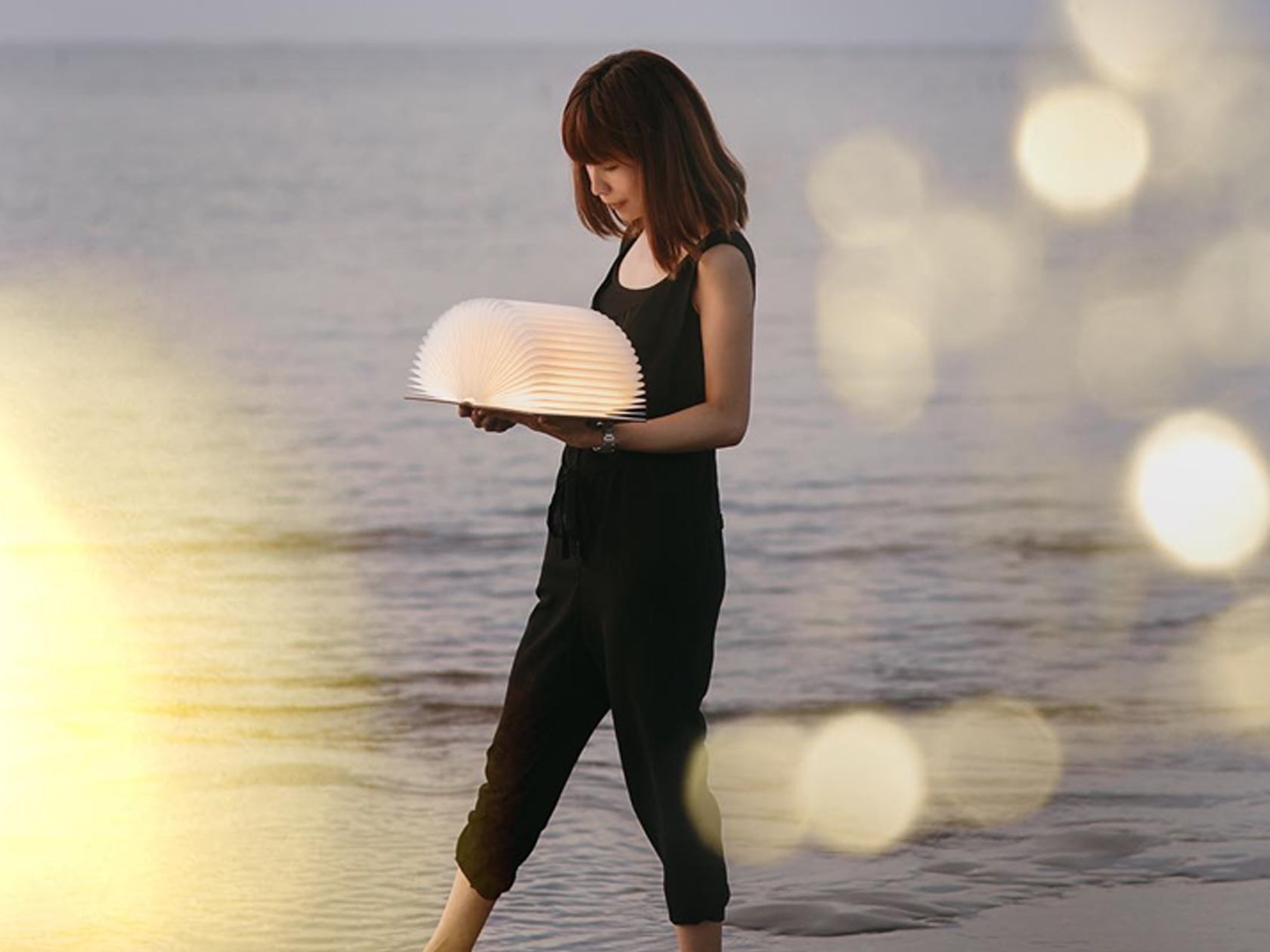 沒有按鈕,沒有開關,沒有電線,就像一本書,展開就開燈,合上就關掉。柔和燈光下靜靜的看書靜靜的思考,時間都變得溫柔起來。