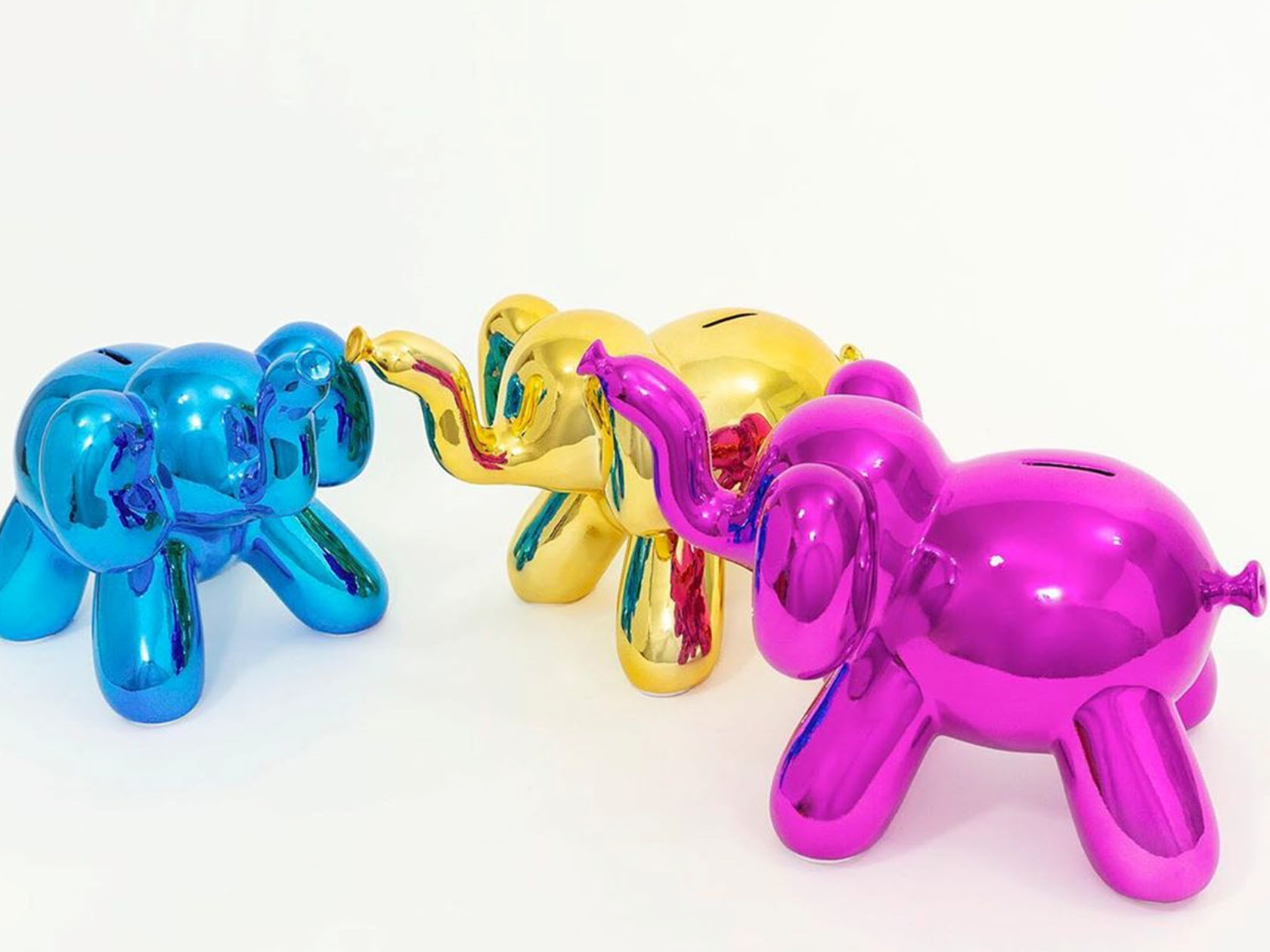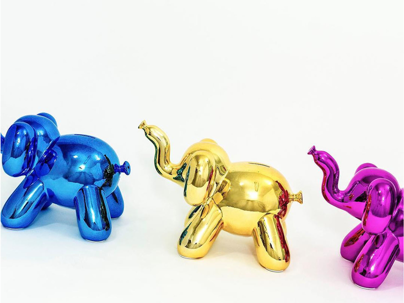 這個加拿大品牌成立於1989年,Made by Humans 2認為只須保有俏皮的態度、激盪想像力和發揮創意,藝術和生活便能同時存在,為此創造出許多富饒趣味的當代藝術感生活用品。Playhouse設計生活精選的招財小物─閃亮普普風動物存錢筒,閃光猴子、金色邦妮兔、長鼻金象、銀白氣球狗,亮面金屬處理讓您不論將它放置在家中哪個位置都不容忽視,可愛又現代的設計,將存錢這件平凡小事變成金銀滿載的行動藝術。