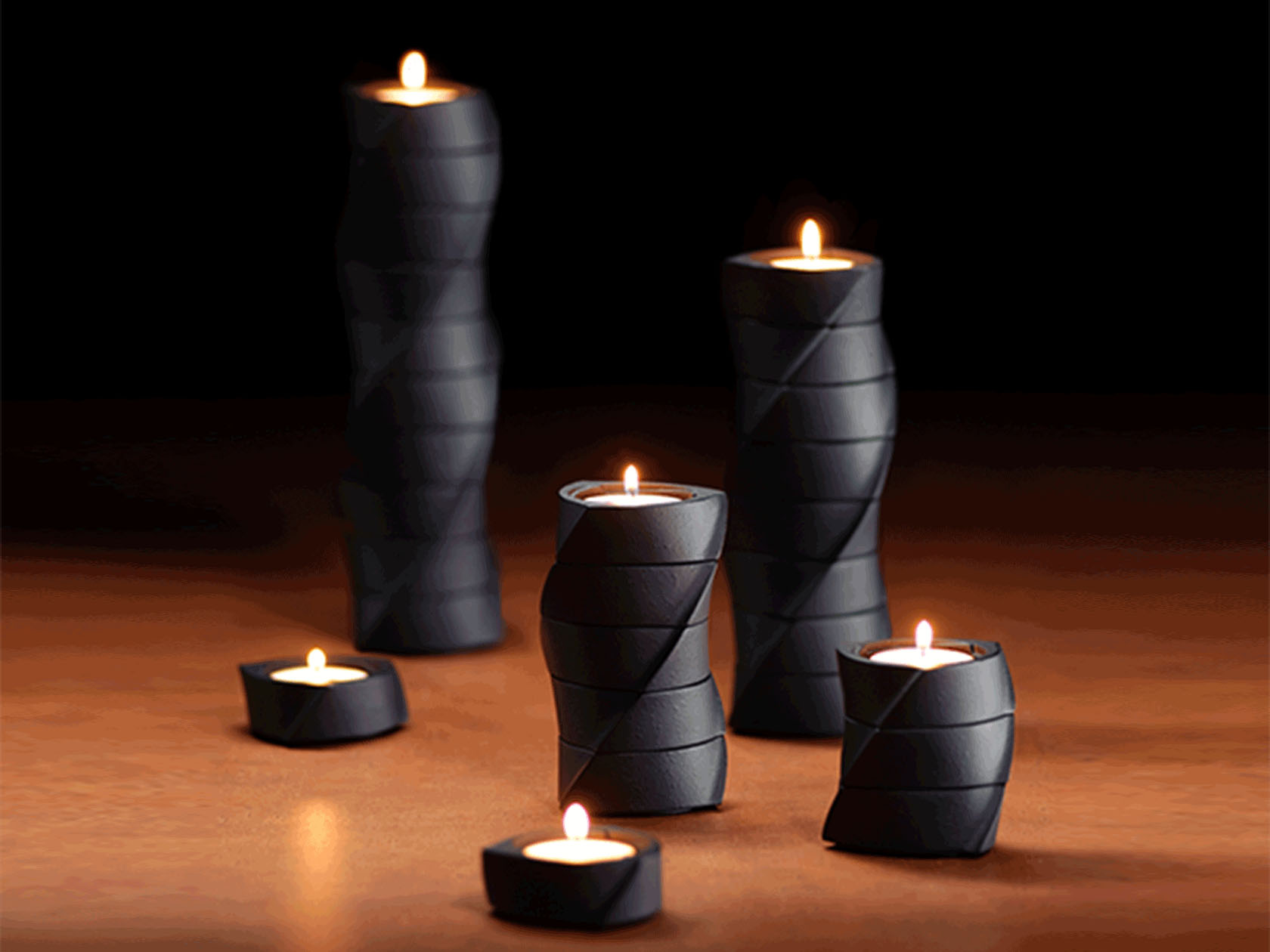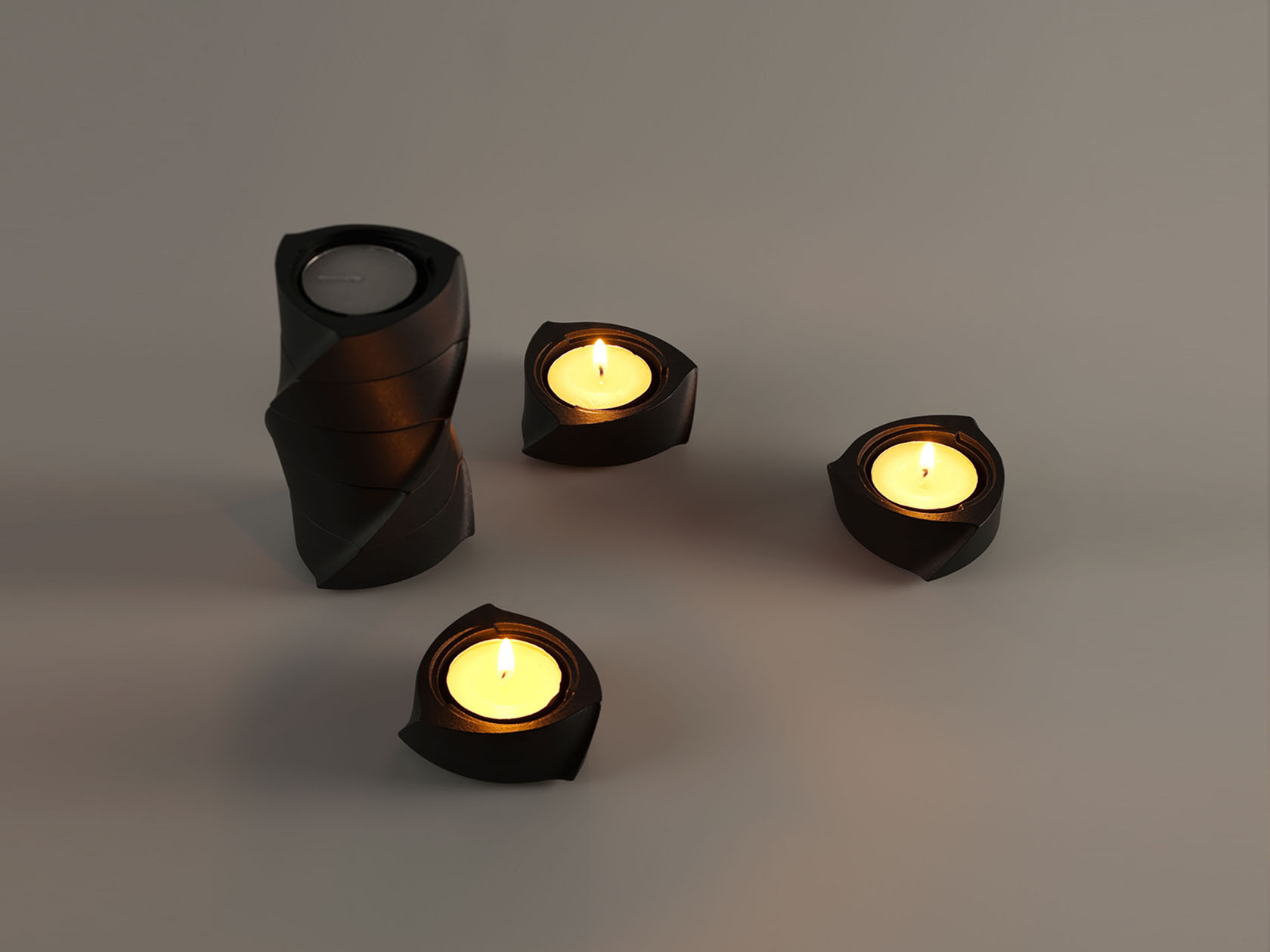 自由搭配組合的燭台,搭建起來呈現螺旋狀的效果,而分開每一個又是獨立的個體。