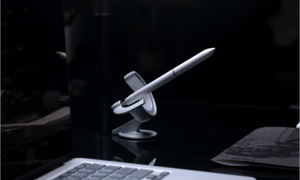 為了將漂浮效果極大化,自立筆〔未來〕除了結構精密度十分重要外,所有的自立筆系列,都有一些設計師不能妥協的堅持,導致生產難度大大提升 --- 仰賴台灣金屬工藝,機器與專業師傅手工配合,經上百道複雜工序製造,並非普通大量生產產品。