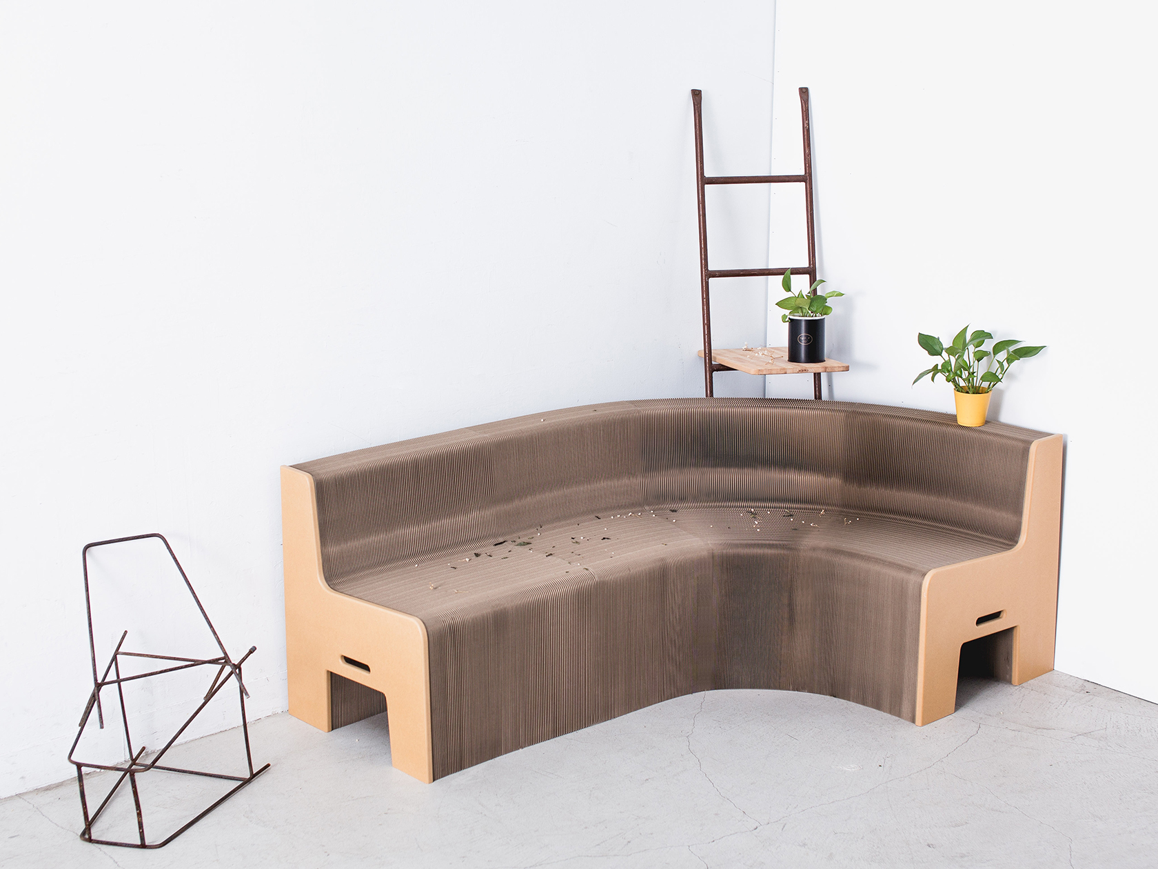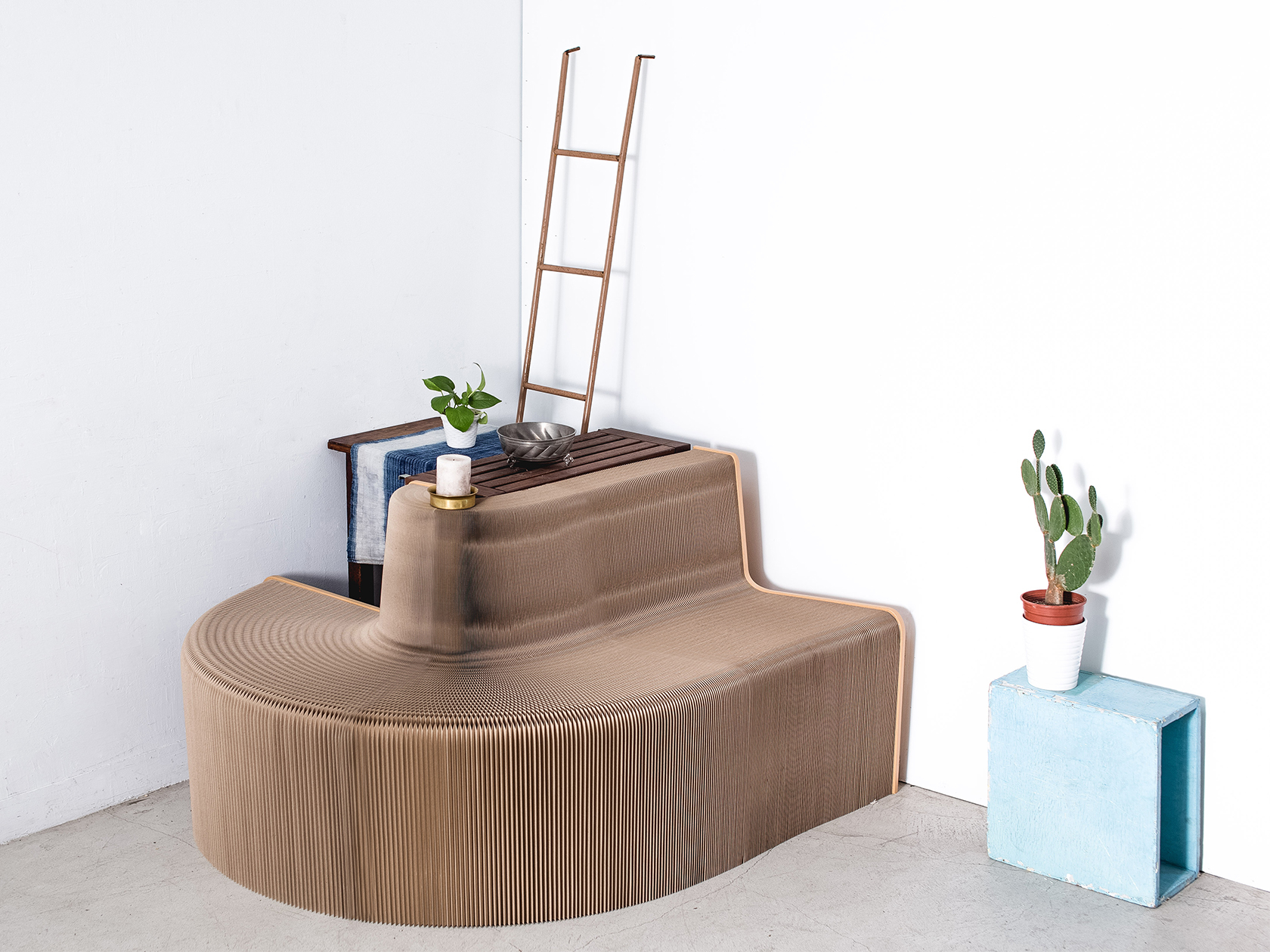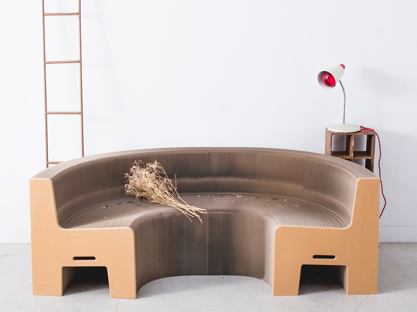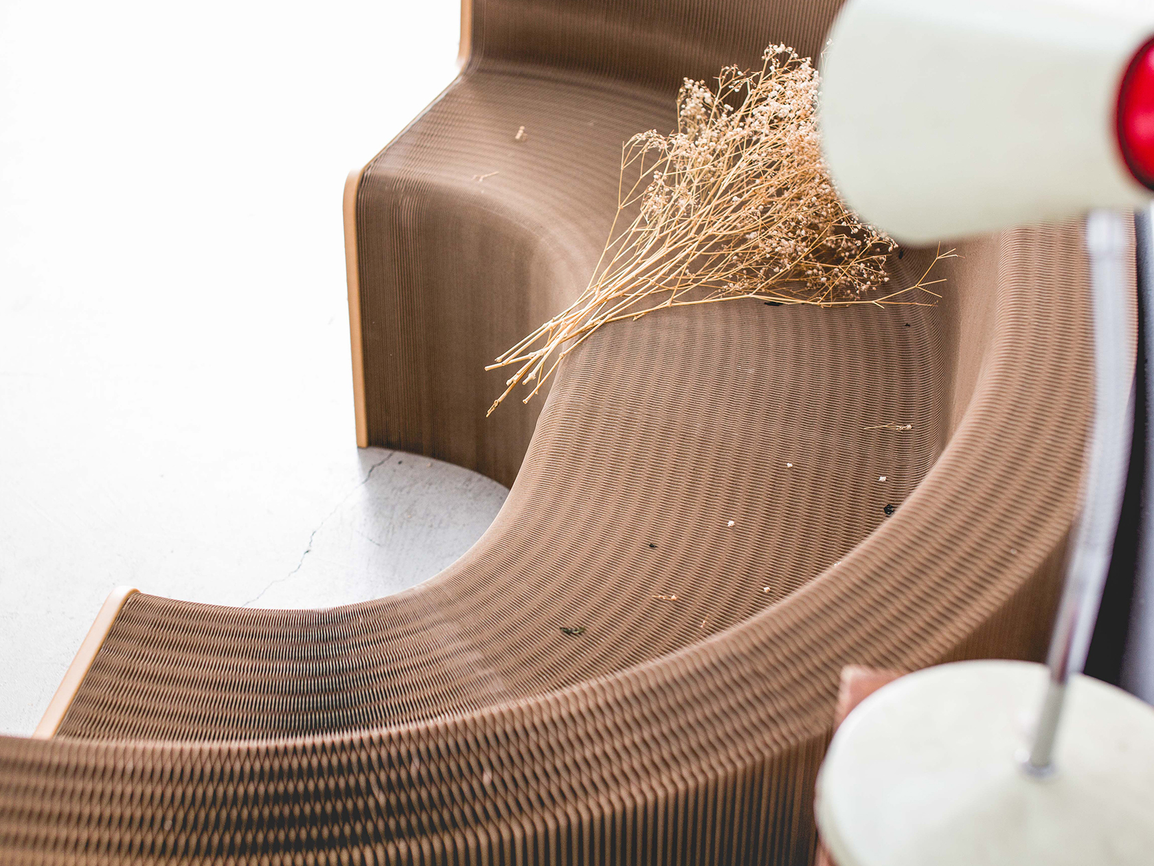 洛陽紙櫃蜂巢椅(凳),可坐一至八個人,從邊緣拉開,就可輕鬆改變椅子長度。全系列使用的蜂巢結構,可以輕易地延展或收縮,靈活創造各種線條與姿態。隨著人的節奏改變空間的不同表情;時而填滿,時而留白,可以沉靜可以活潑,透過豐富的視覺變化體現空間與家具之間的對話。不僅在生活中增添了驚喜的趣味,也拉近與人﹑與世界的關係,全系列使用專利技術製造,並以可回收再利用的材質製成,表達設計師對於環境的用心與材料的尊重。