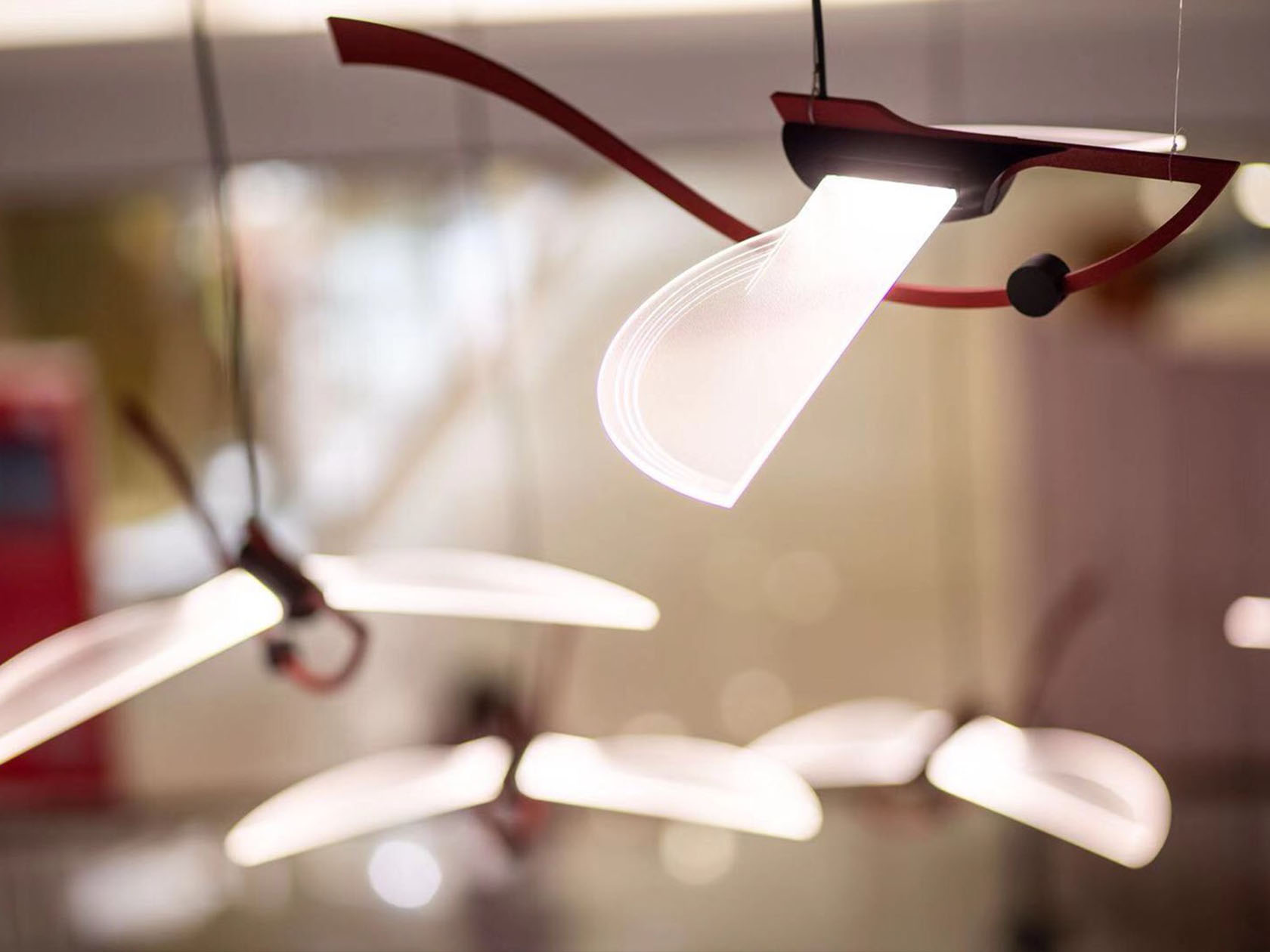 莊子【逍遙遊】裡一則《北冥之魚》的故事開啟了了我們對鯤的想像。鯤由上千萬顆微曲鏡組構成一隻大型的飛魚吊燈,魚身鳥翅突破傳統燈具該有的樣貌,在工藝與工業間自在優游。擺動著發光的翅膀,時而向天際翱翔,時而向下俯衝。大海關不住這屬於天空的魚,屋瓦也困不住這悠游自在的心。