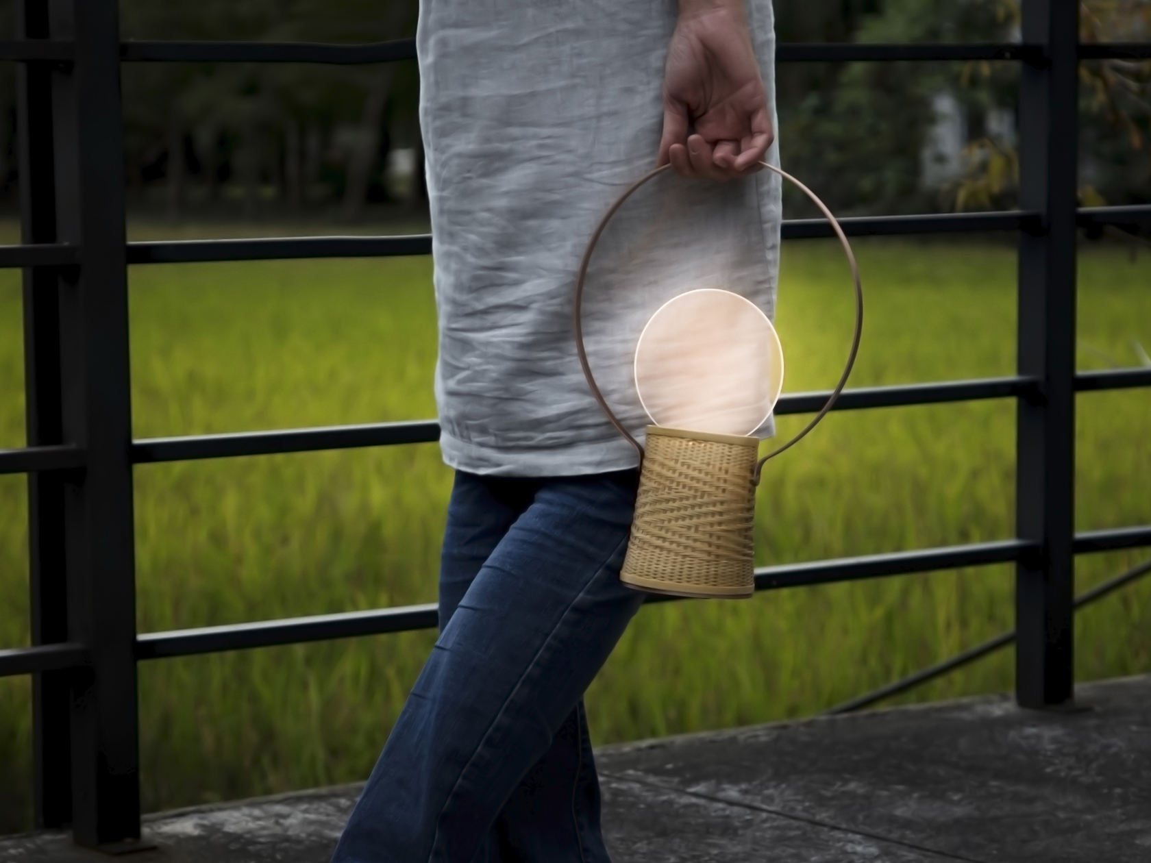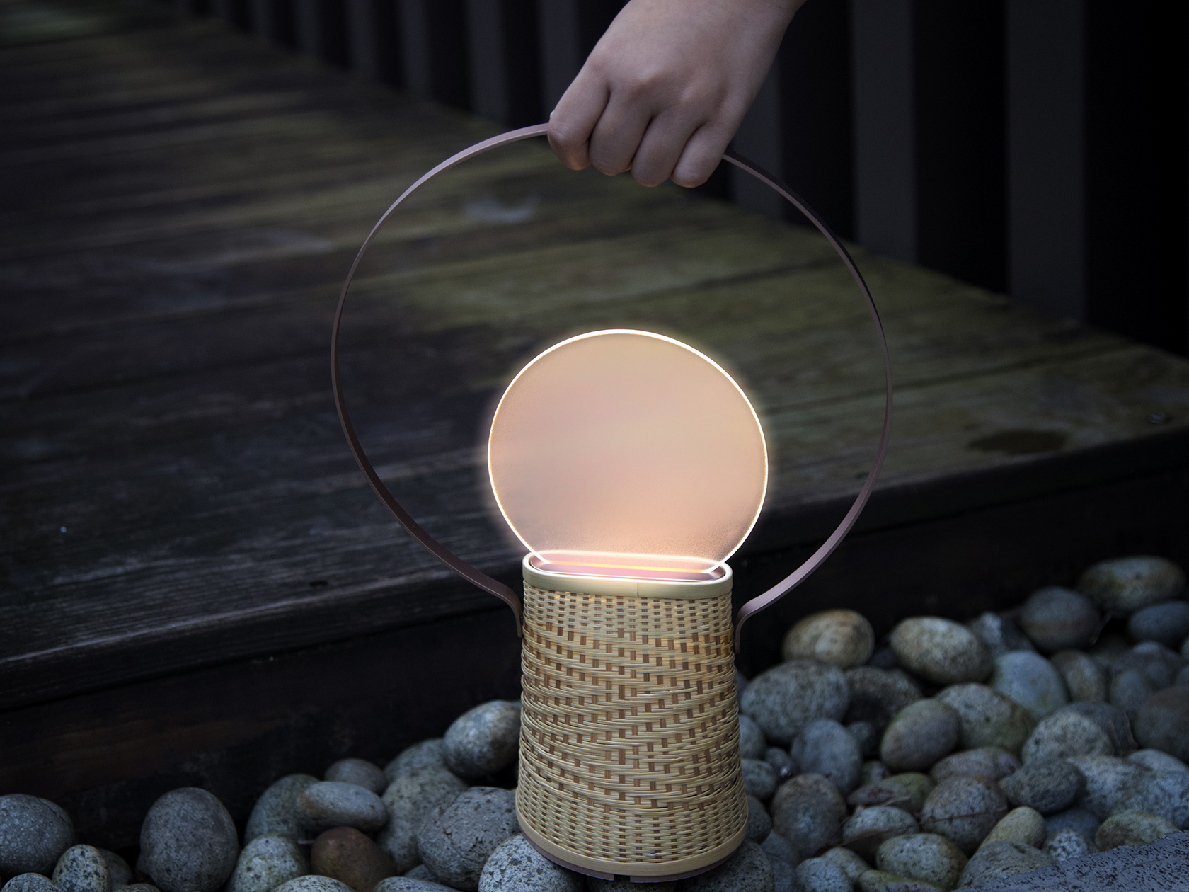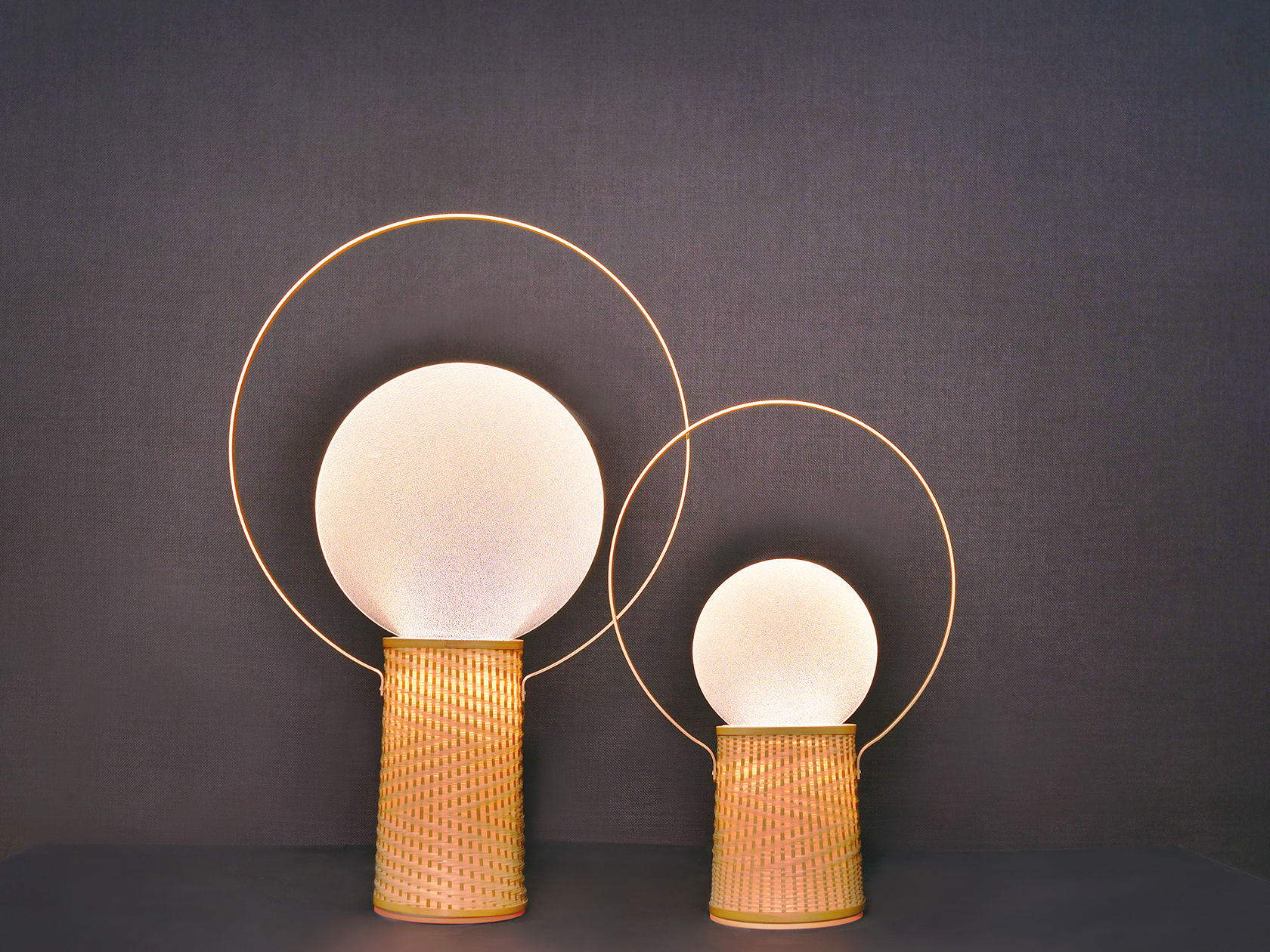 霧銅表面的圓框在光板的照射下閃閃發光,仿若若晨曦中即將謝幕的星辰,微微的光在竹編的細縫中露出,是清晨大地的甦醒的景象,竹編底座上隱約可見的細緻山道紋是延伸至遠方的未來。Xcellent以一盞光描繪每個日出感動的瞬間。