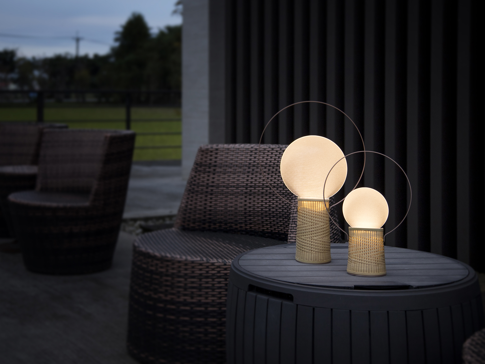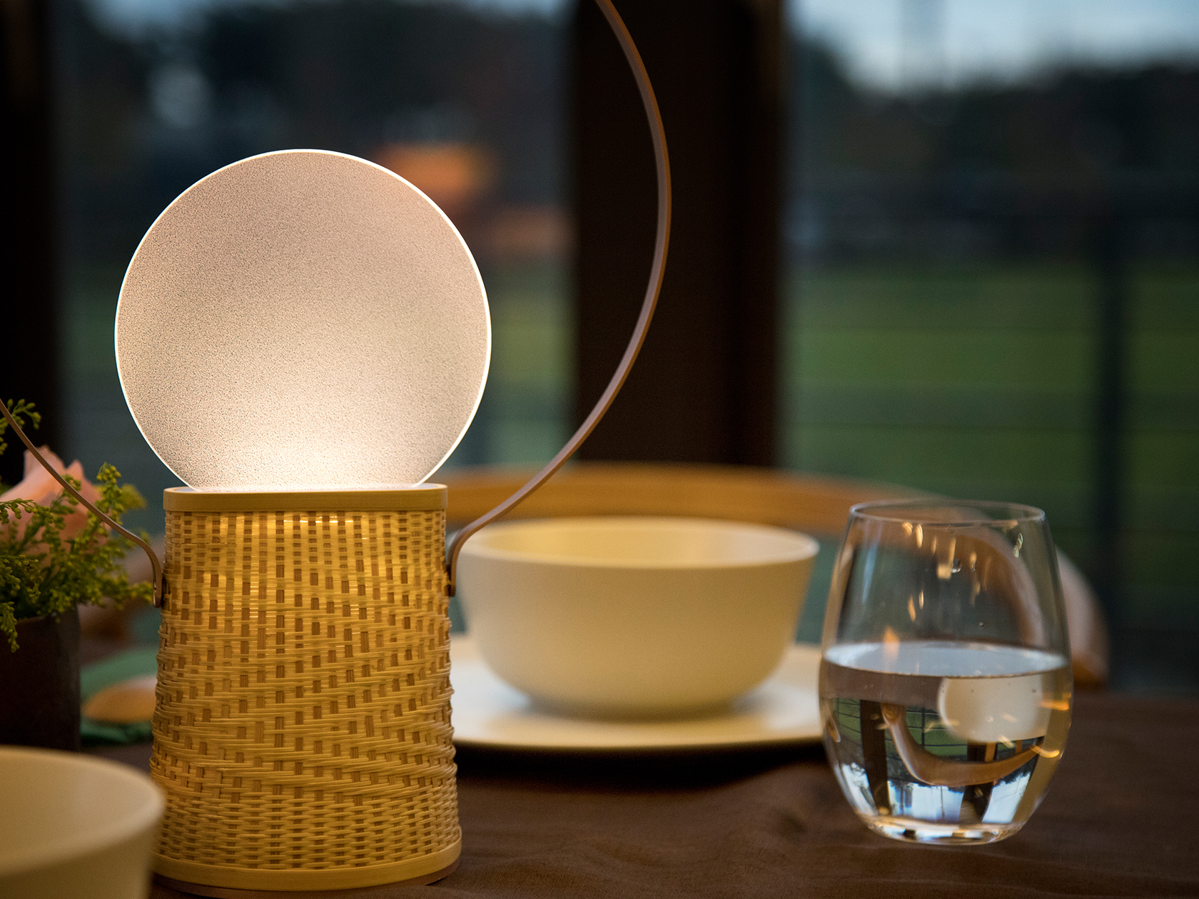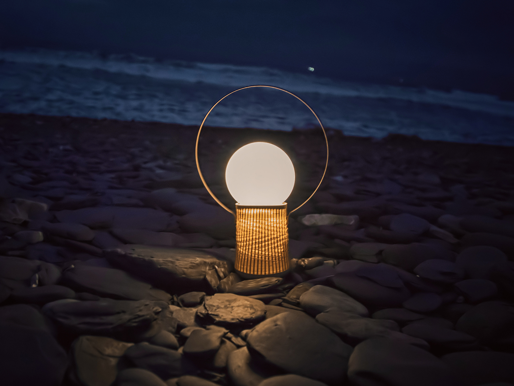 「日出」運用金屬圓框、圓形光板以及竹編底座三個元素,勾勒出晨曦初照時的天空、旭日與大地。