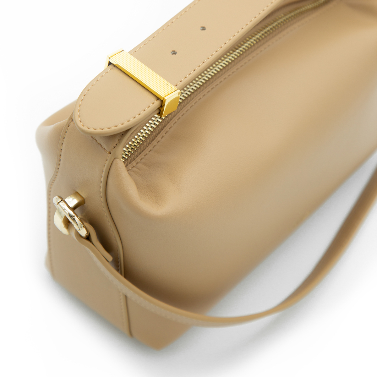 這款枕形包採用柔軟小牛皮製成,配有頂部手柄和搭扣,配有可拆卸肩帶 - 適合任何場合的經典之作。