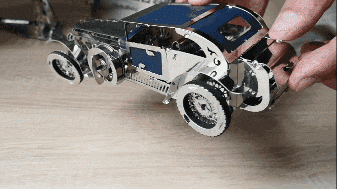 咆哮年代豪華跑車透過橡膠輪的驅動讓它跑的如閃電一般快,並可轉彎跑出優美曲線。 部件中亦使用人造皮革和細膩高雅的裝飾來彰顯其歷史韻味和價值。