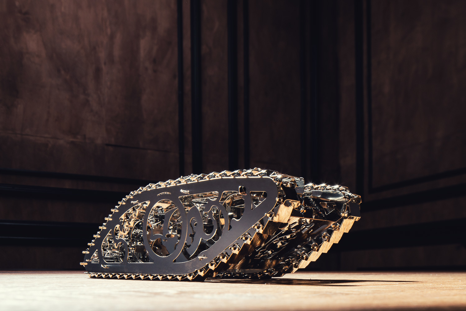 完成的成品不只帶給您滿滿成就感,光影下還閃耀著金屬榮耀光芒;撥動坦克上方縮小的控制桿,即可啟動金屬履帶的傳動裝置,整台坦克將在您手中前進、快行! 更厲害的是,它就像真實坦克車一般,還可在您的桌面翻山越嶺!